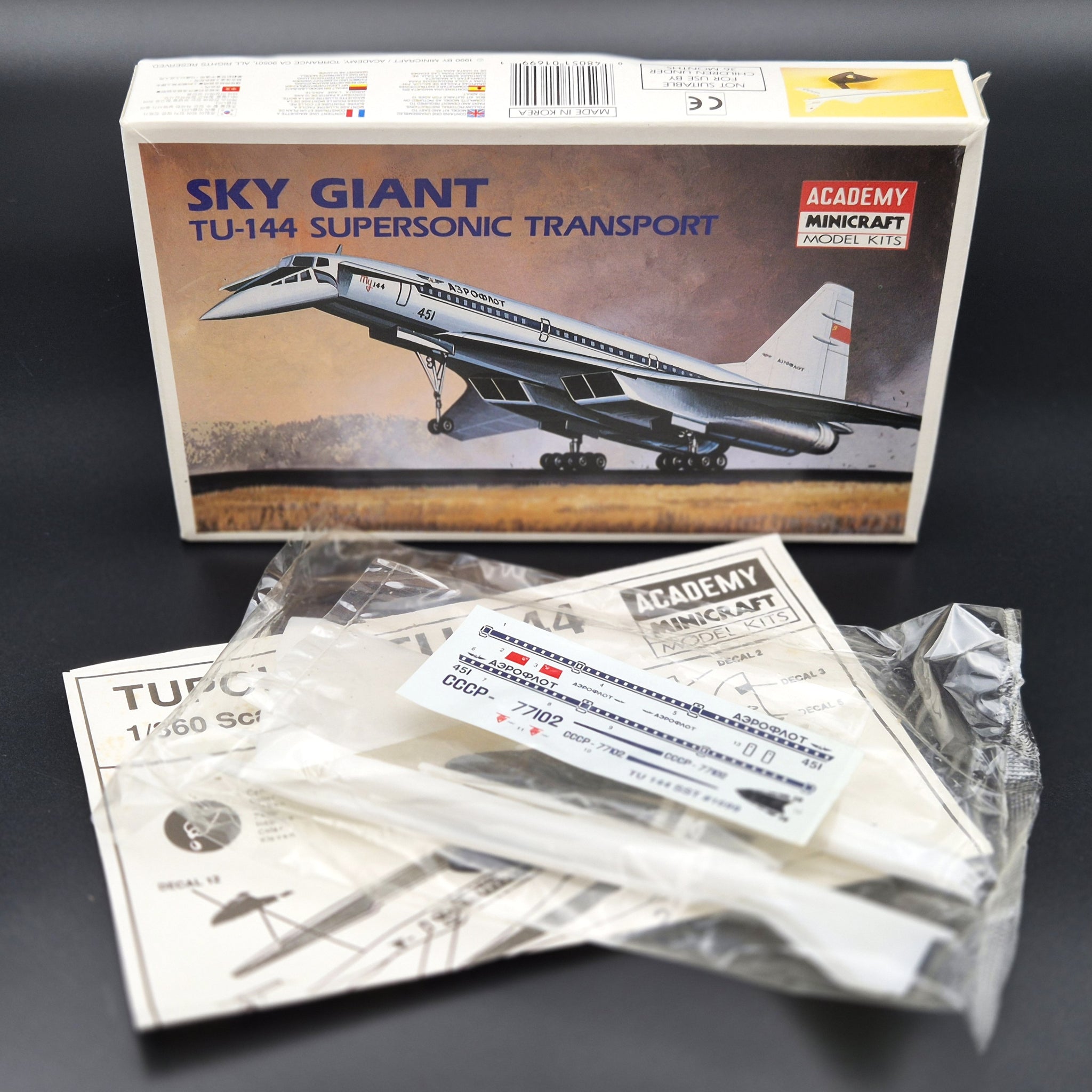 Academy Model Kit 1975 TU-144 Supersonic Aeroflot Transport Aircraft Model #1699 1:360 Scale Plastic Model Kit