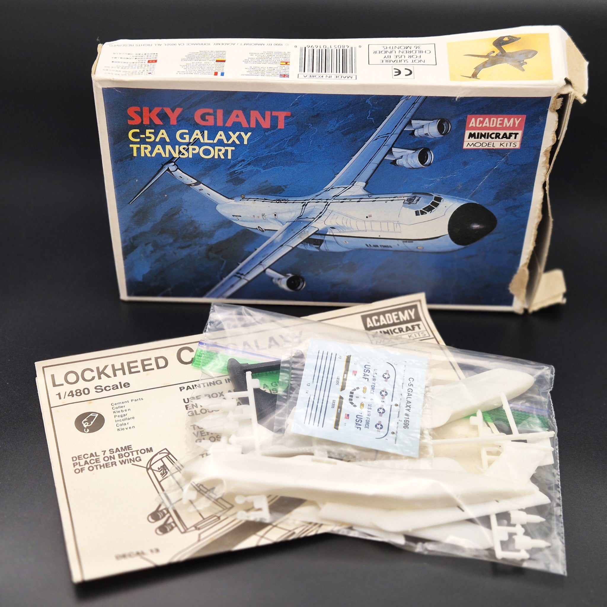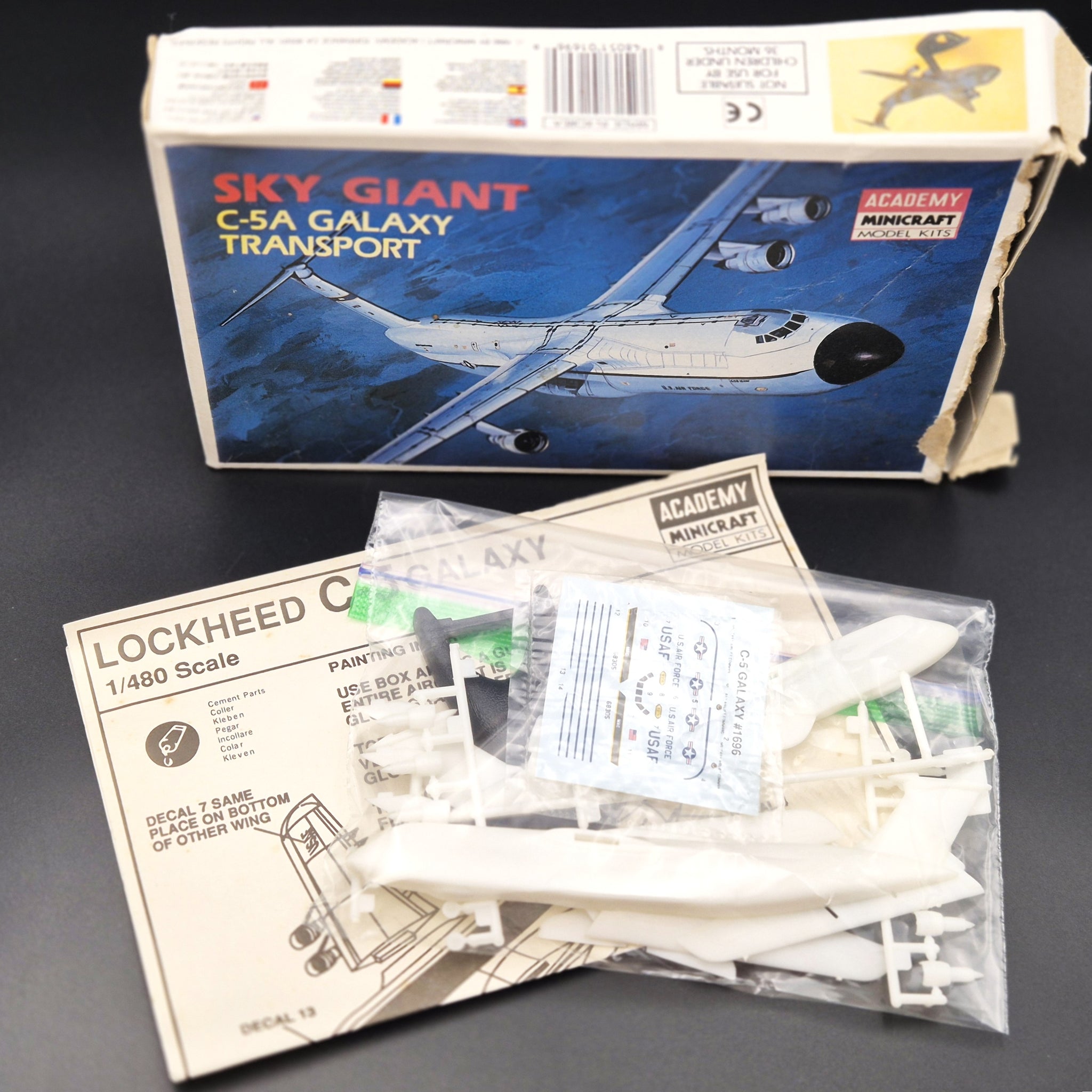 Academy Model Kit 1973 C-5A Galaxy Transport USAF Aircraft Model #1696 1:480 Scale Plastic Model Kit