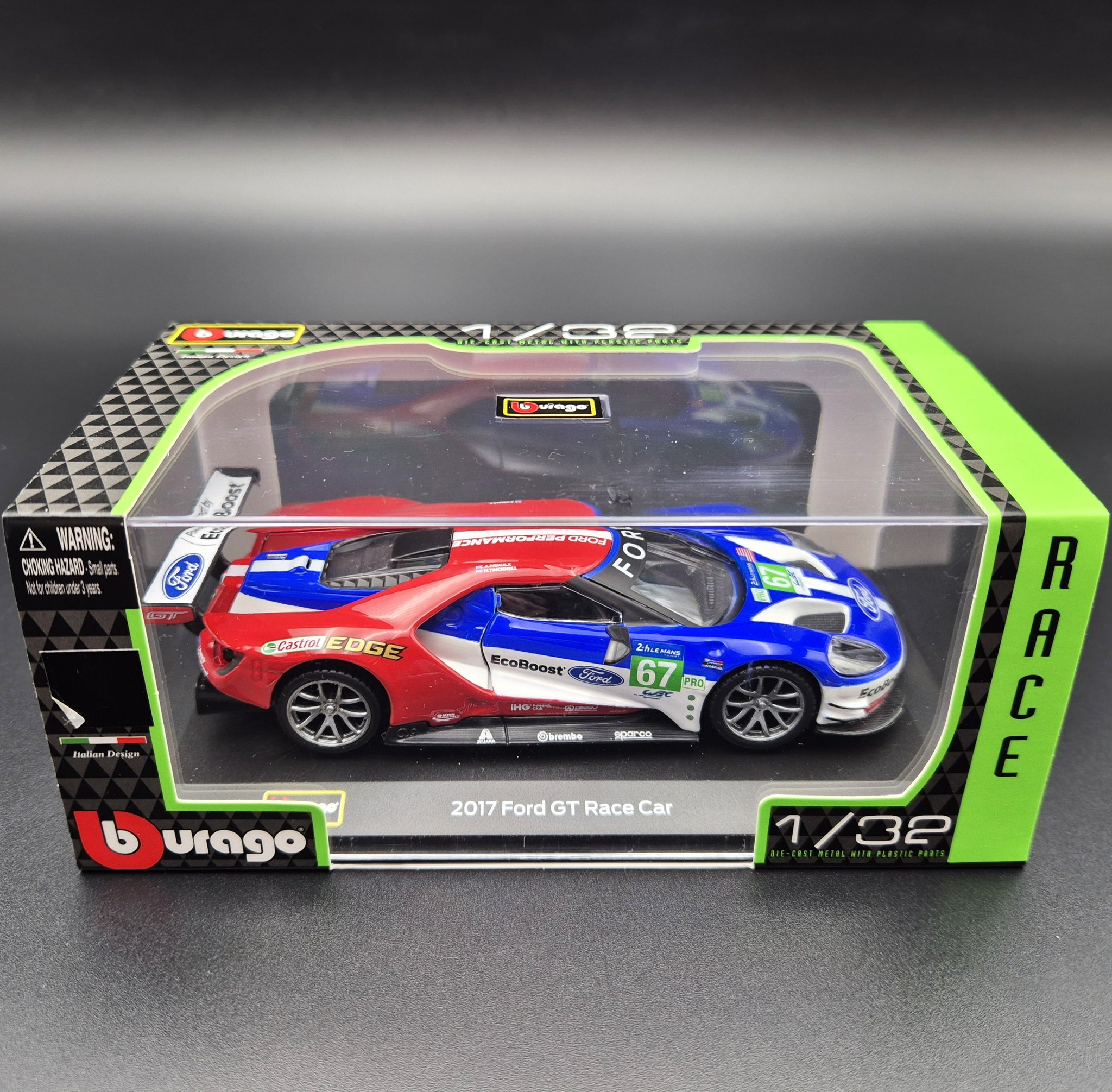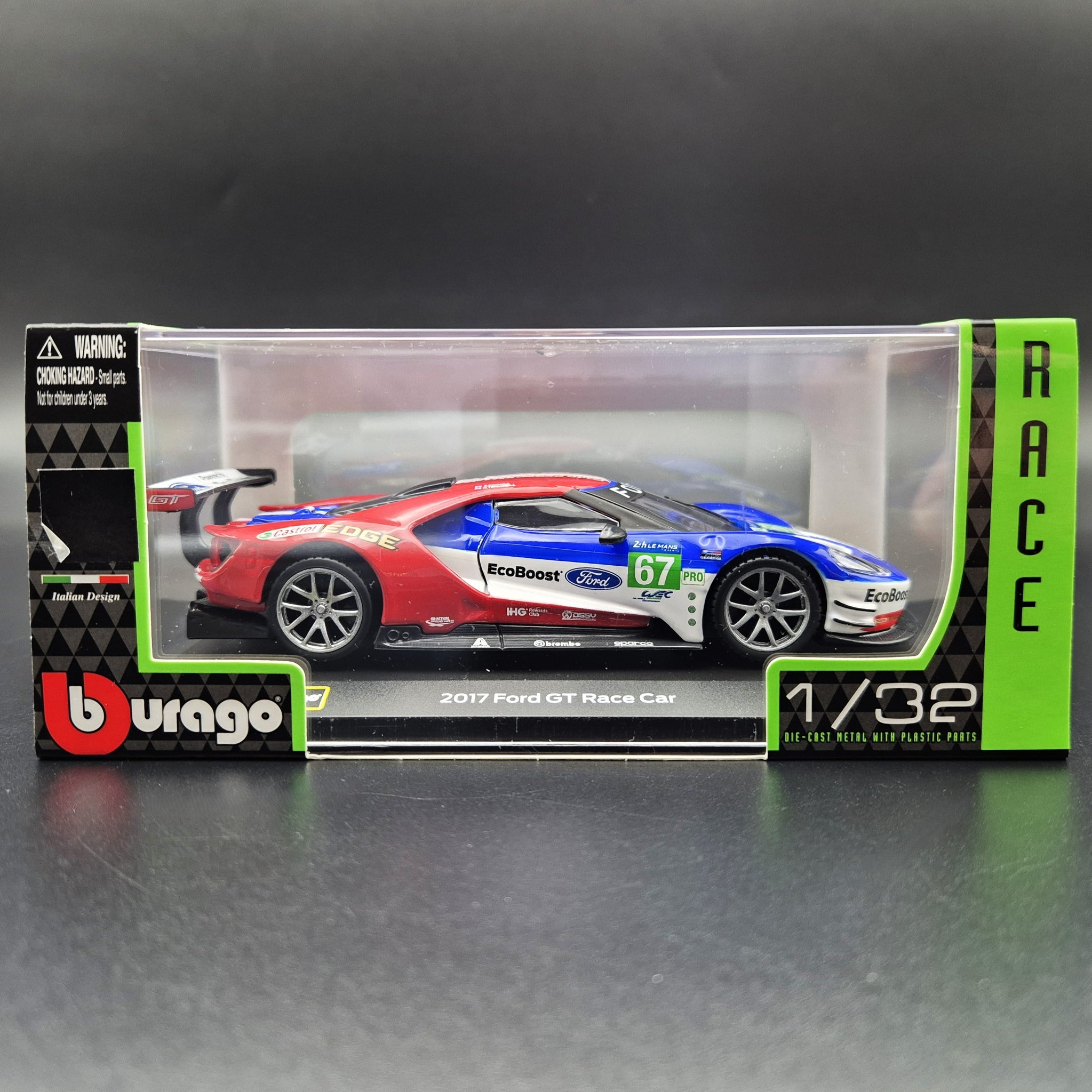 BBURAGO DIE CAST CAR - 2017 Ford GT Race Car #67 Red 1:32 Die Cast Car