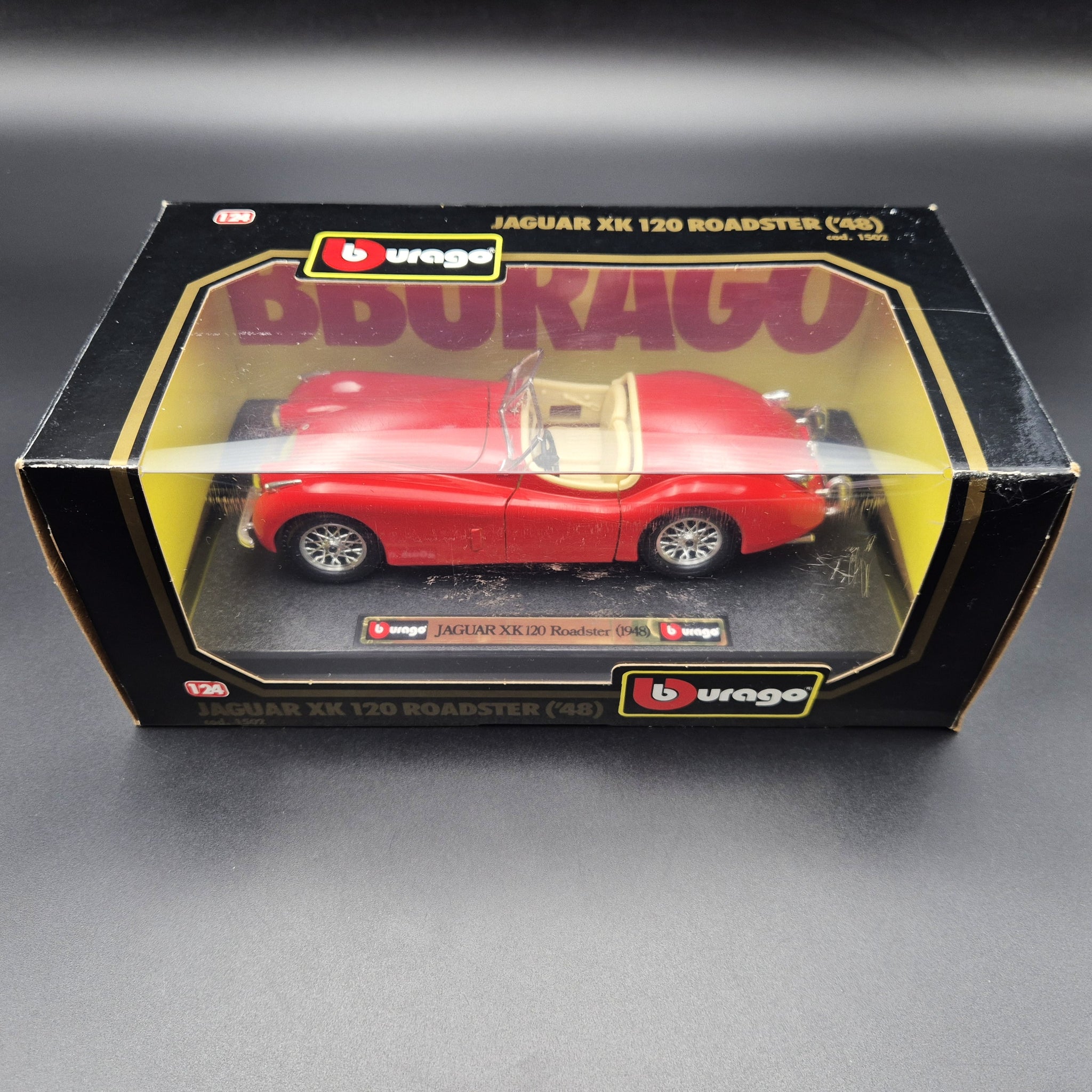BBURAGO DIE CAST CAR - Jaguar XK120 Roadster (1948) Red #1502 1:24 Die Cast Car