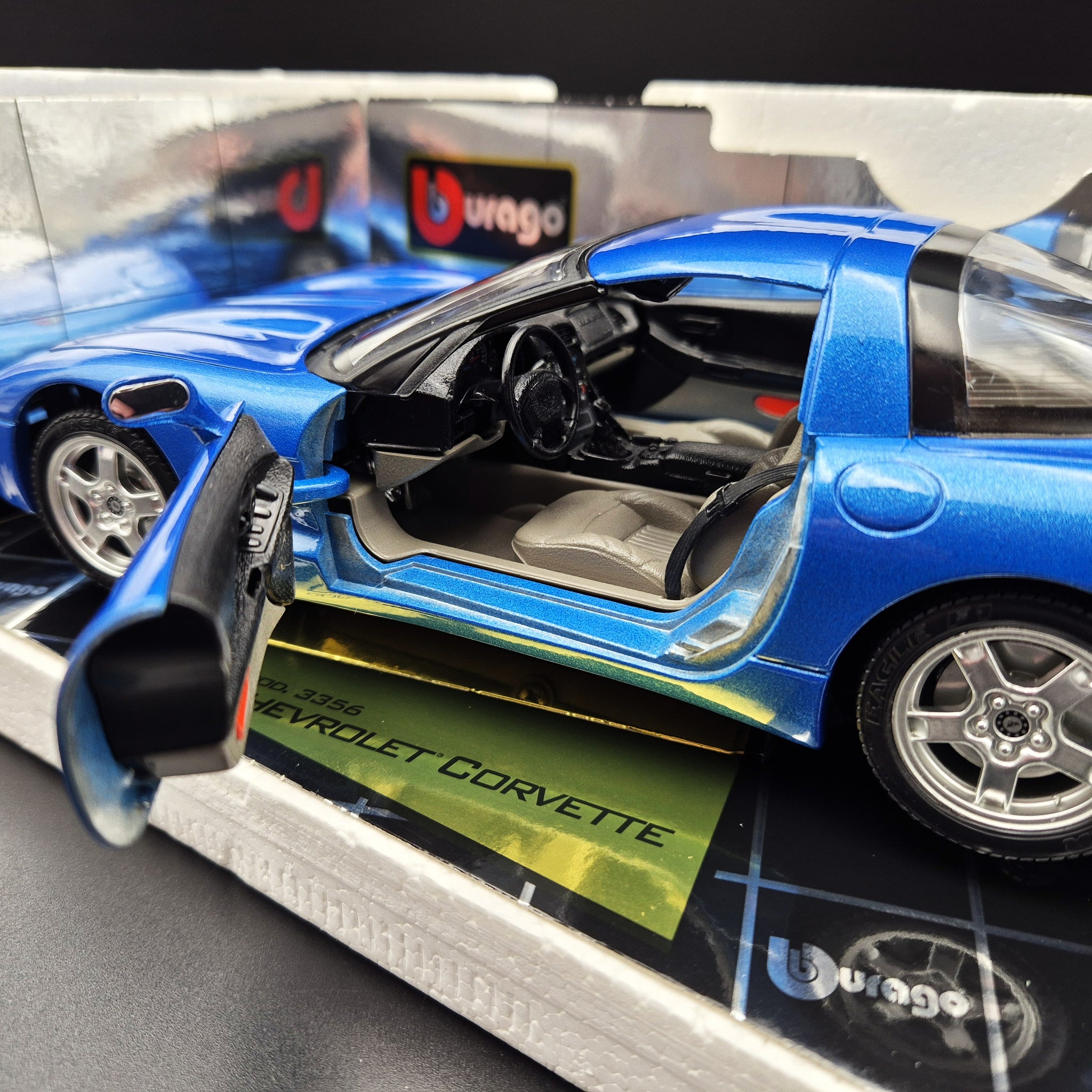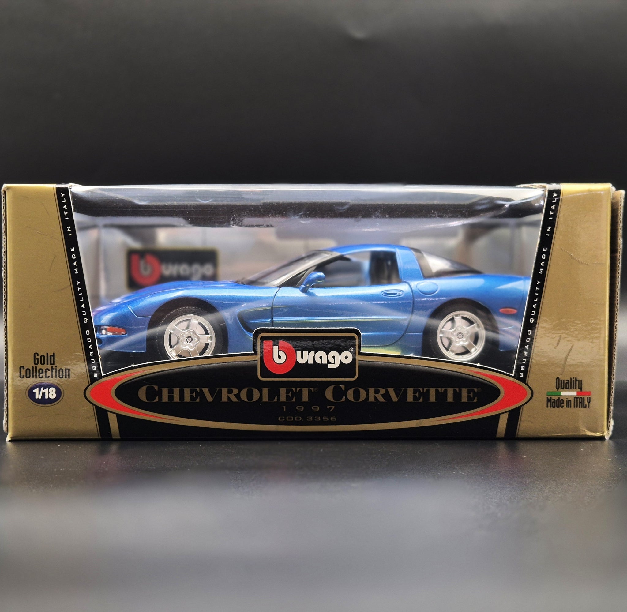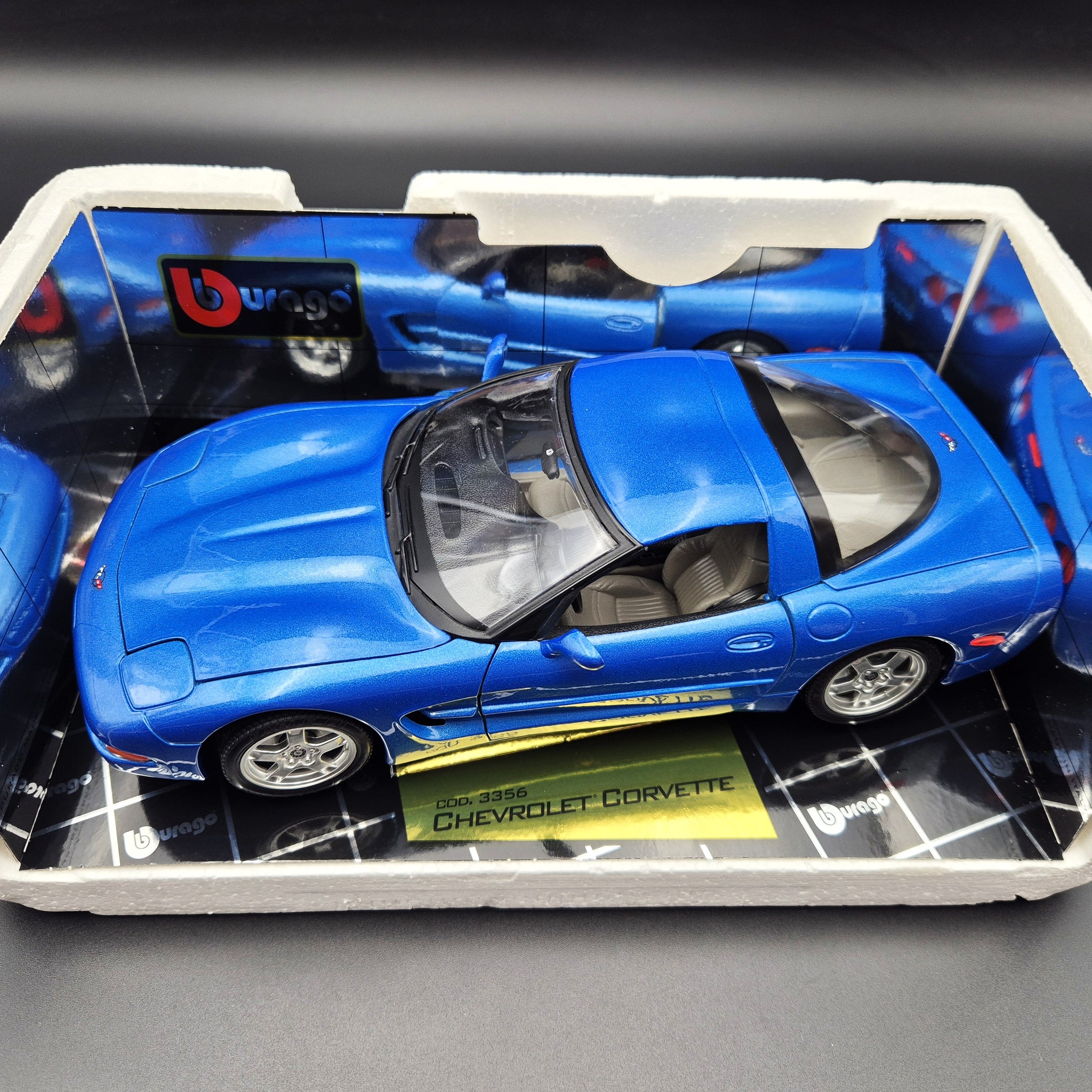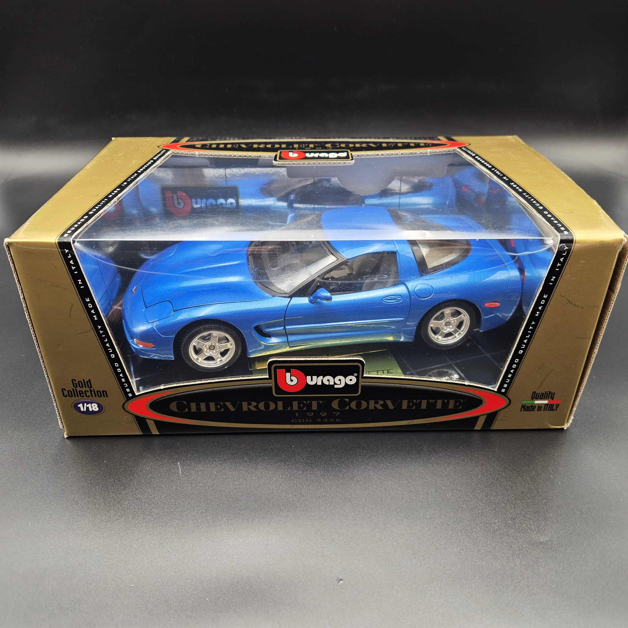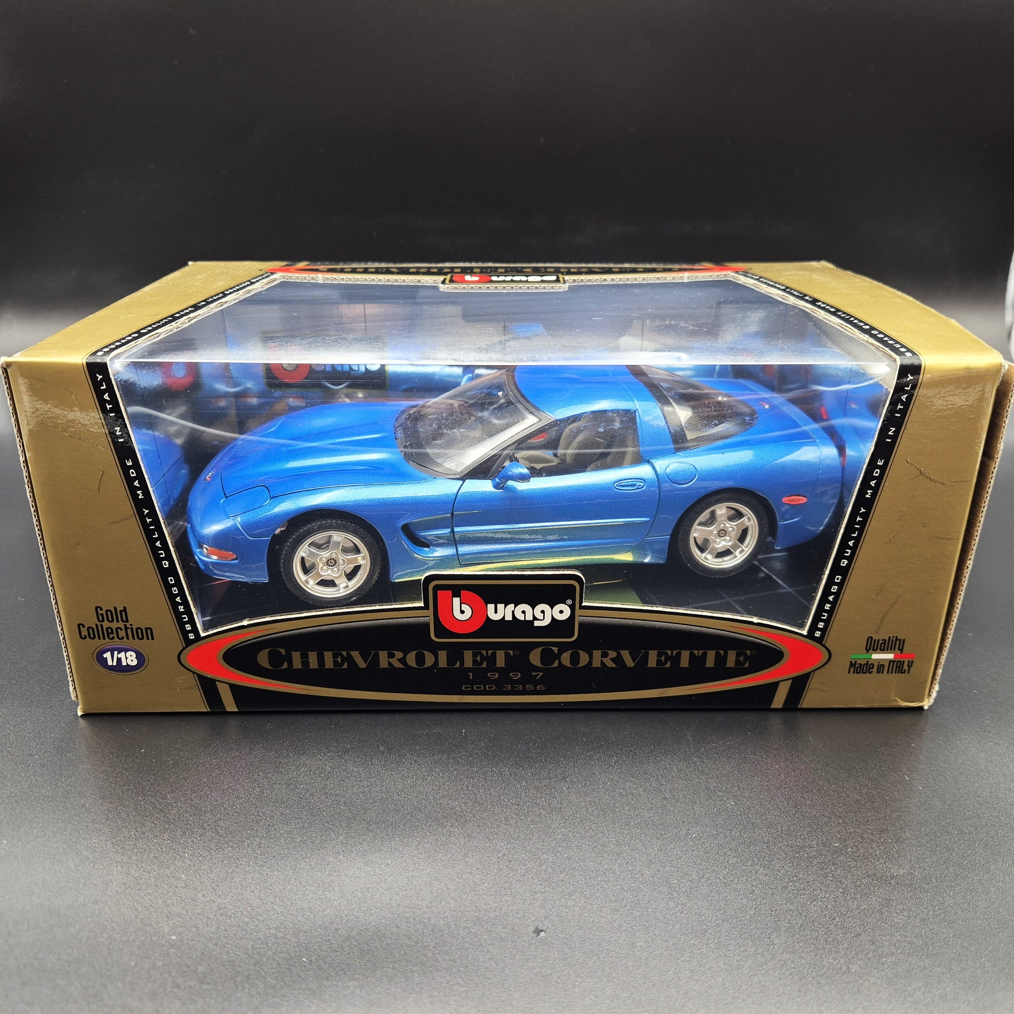 BBURAGO DIE CAST CAR - 1997 Chevrolet Corvette Blue #3356 1:18 Gold Collection Die Cast Car