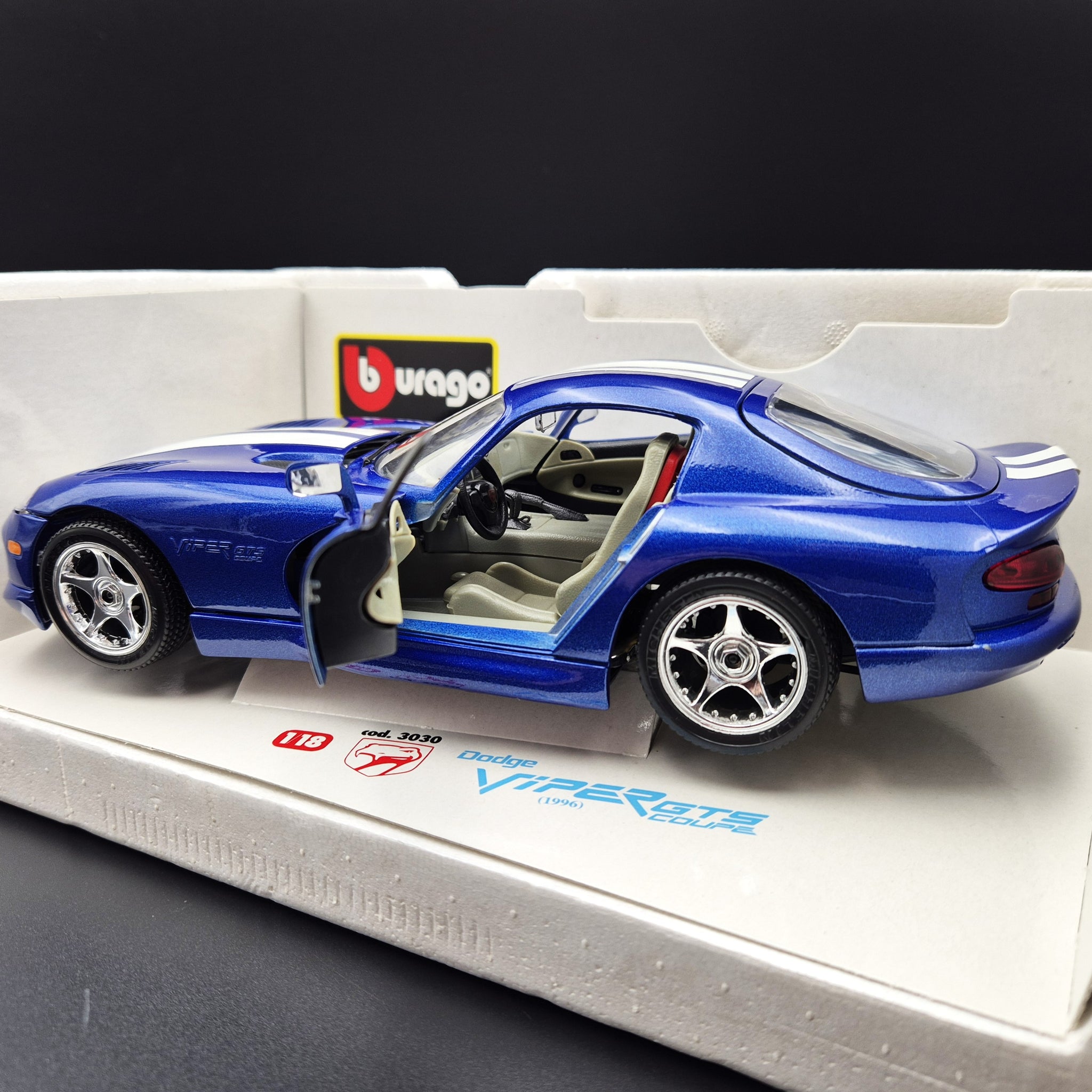 Bburago 1996 Dodge Viper GTS Coupe Blue #3030 1:18 Die Cast Car