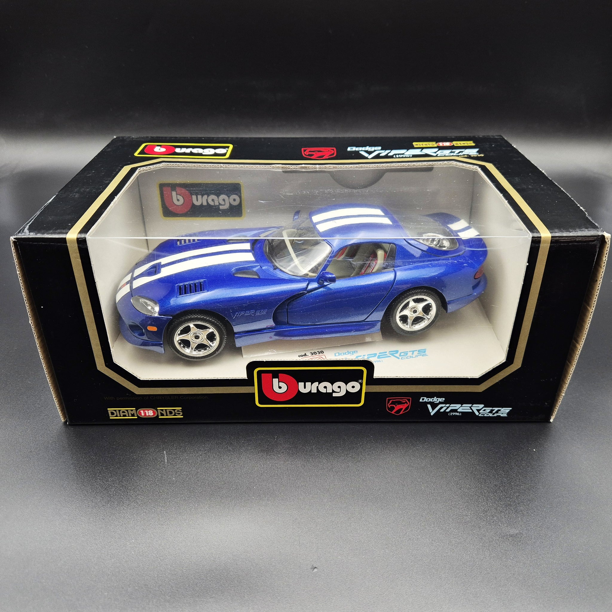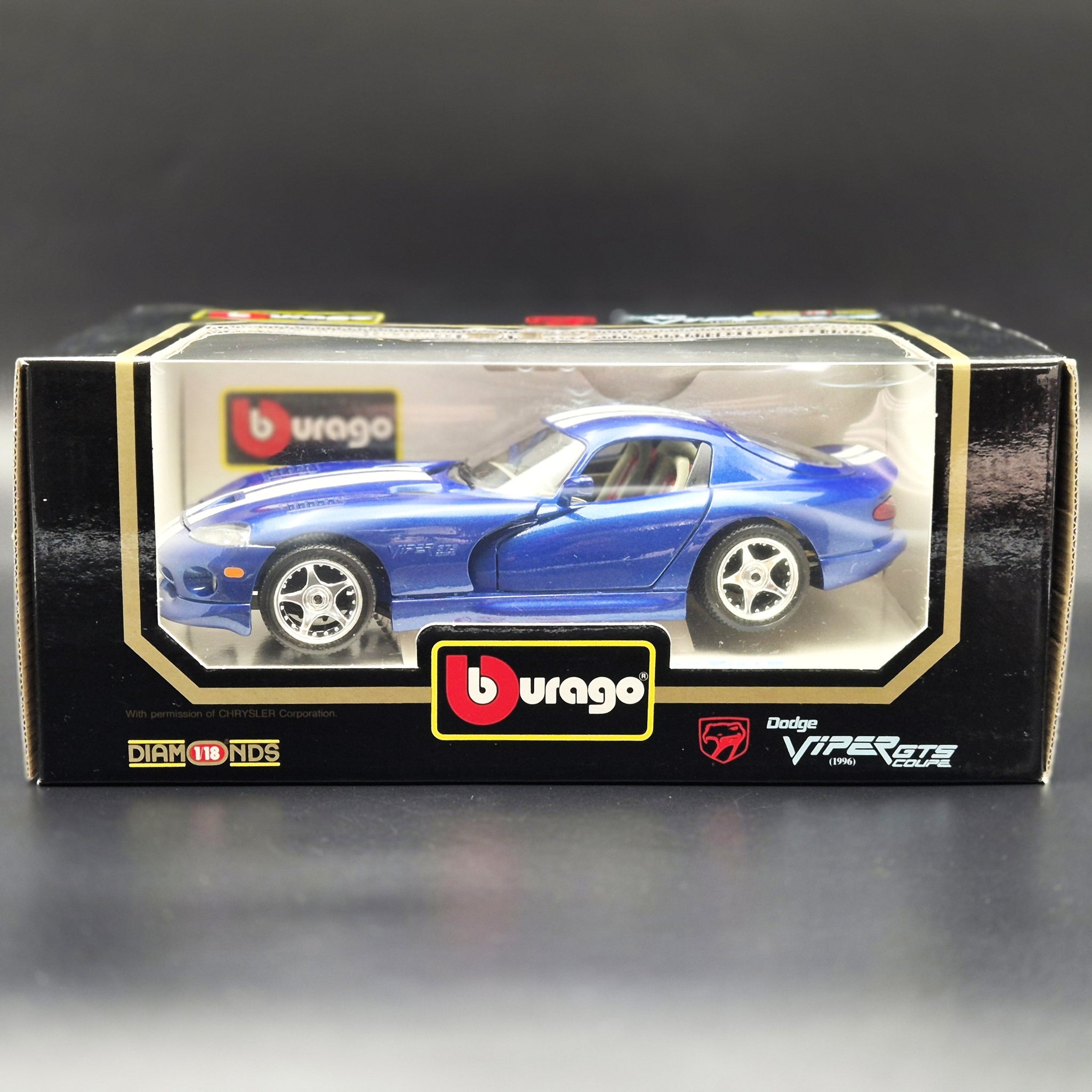 BBURAGO DIE CAST CAR - 1996 Dodge Viper GTS Coupe Blue #3030 1:18 Die Cast Car