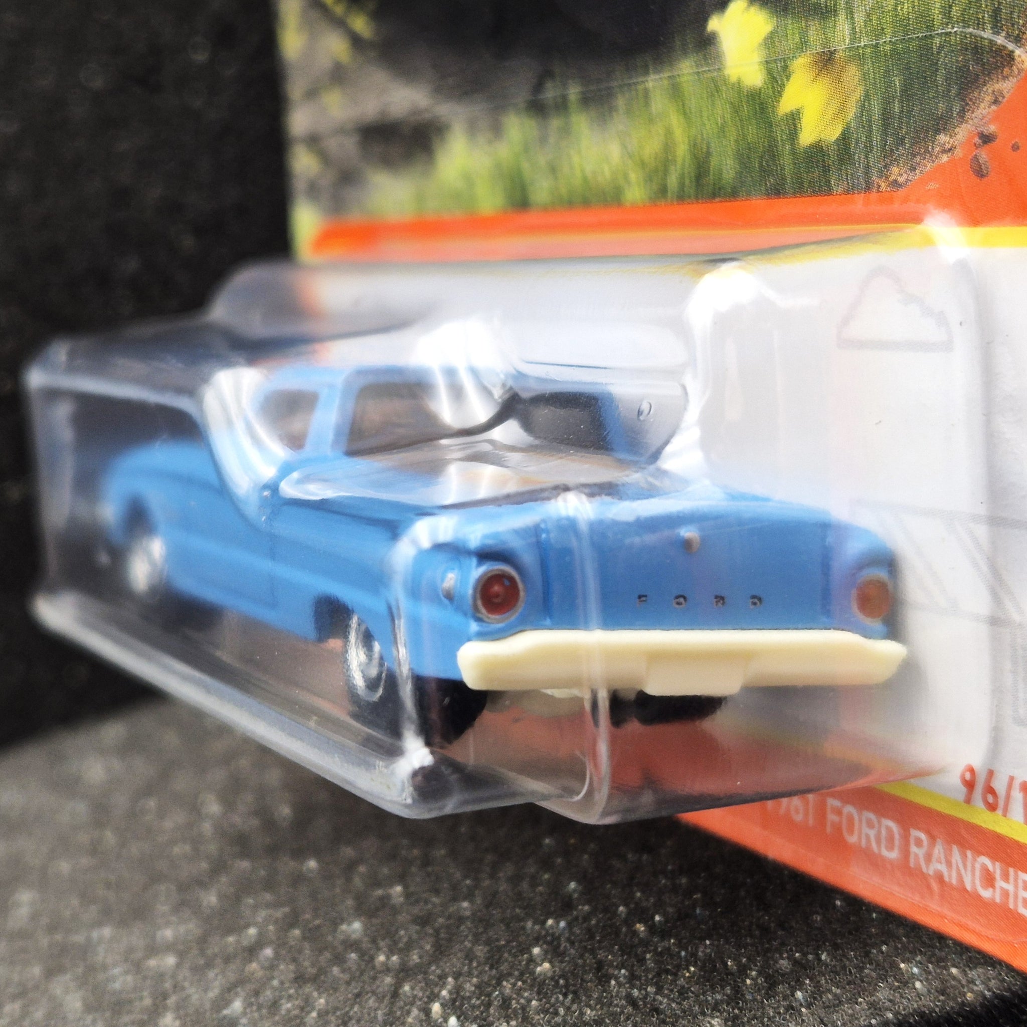 MATCHBOX DIE CAST CAR - 2021 1961 Ford Ranchero Sky Blue #96 MBX Highway New Long Card