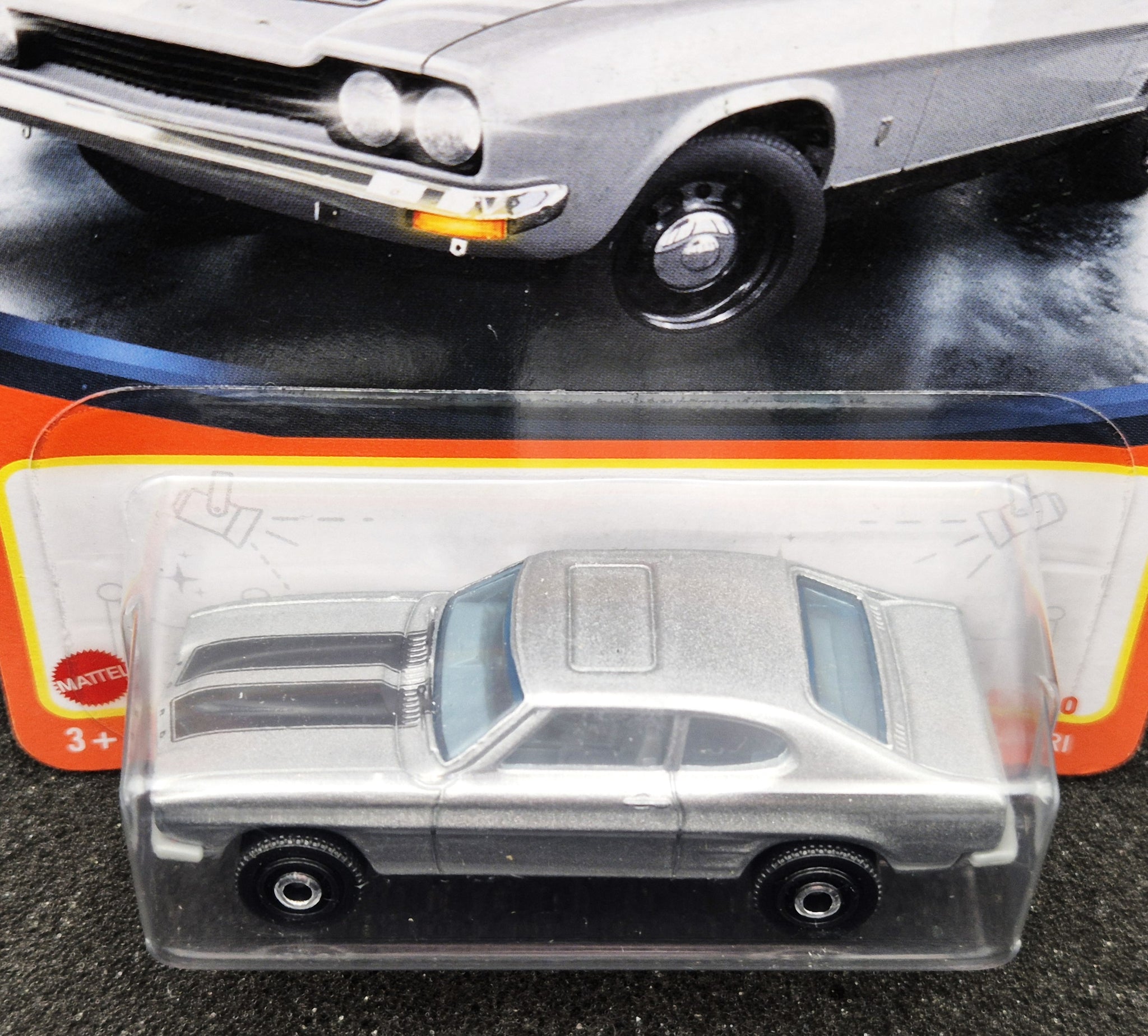 MATCHBOX DIE CAST CAR - 2021 1970 Ford Capri Silver #18 MBX Showroom New Long Card
