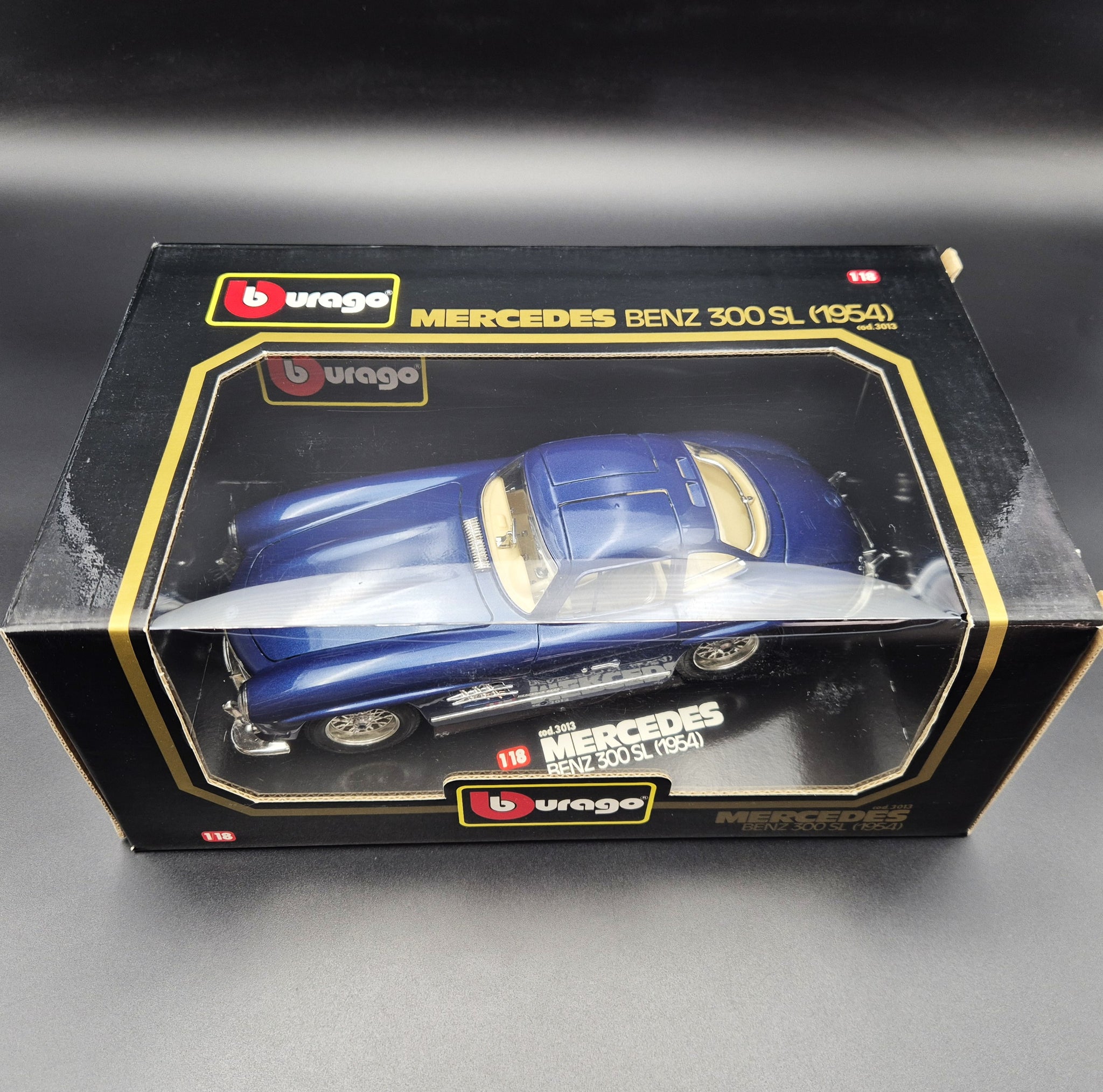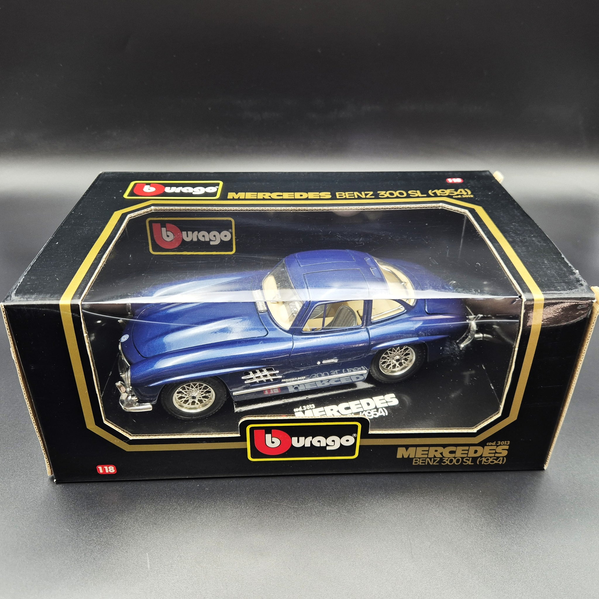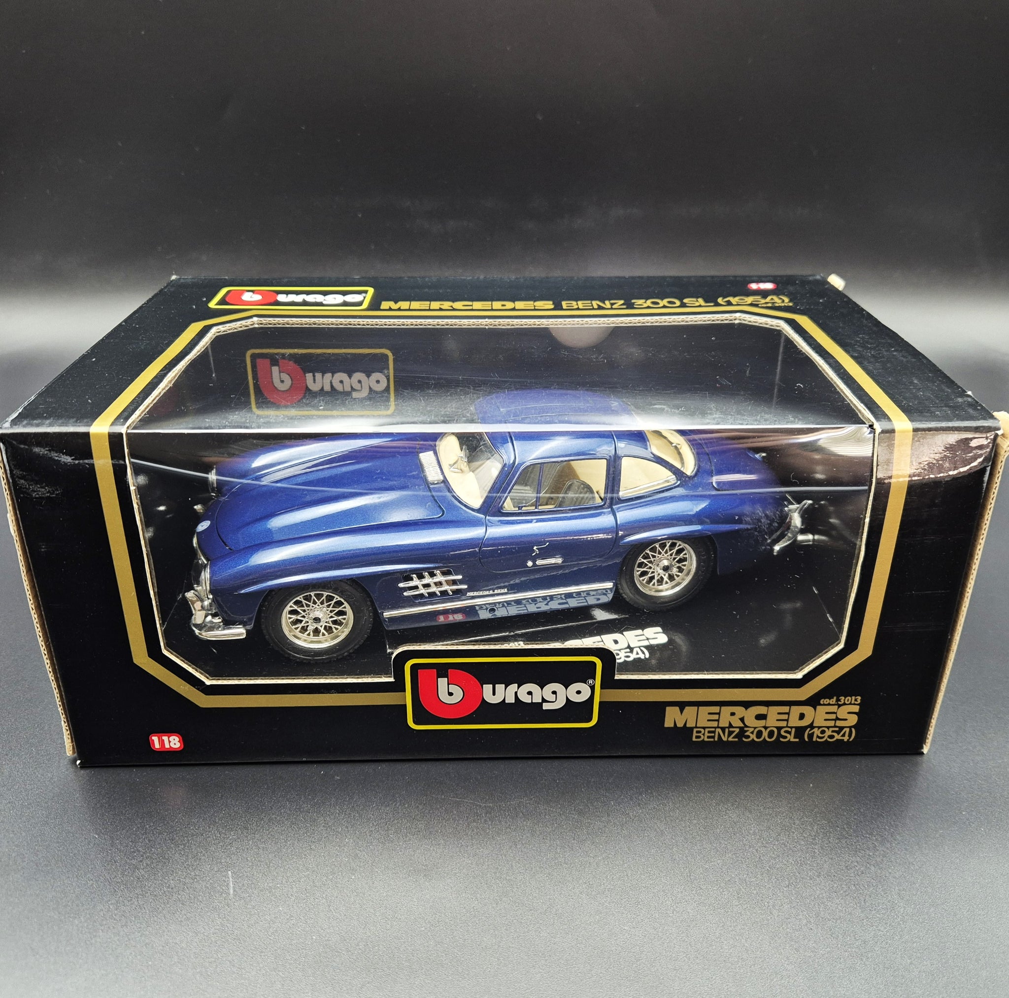 BBURAGO DIE CAST CAR - 1954 Mercedes-Benz 300 SL Gullwing Blue 1:18 Die Cast Car