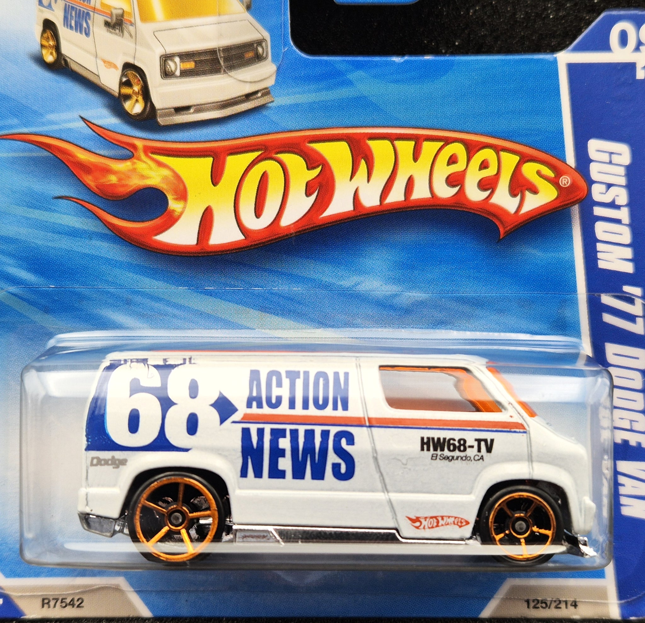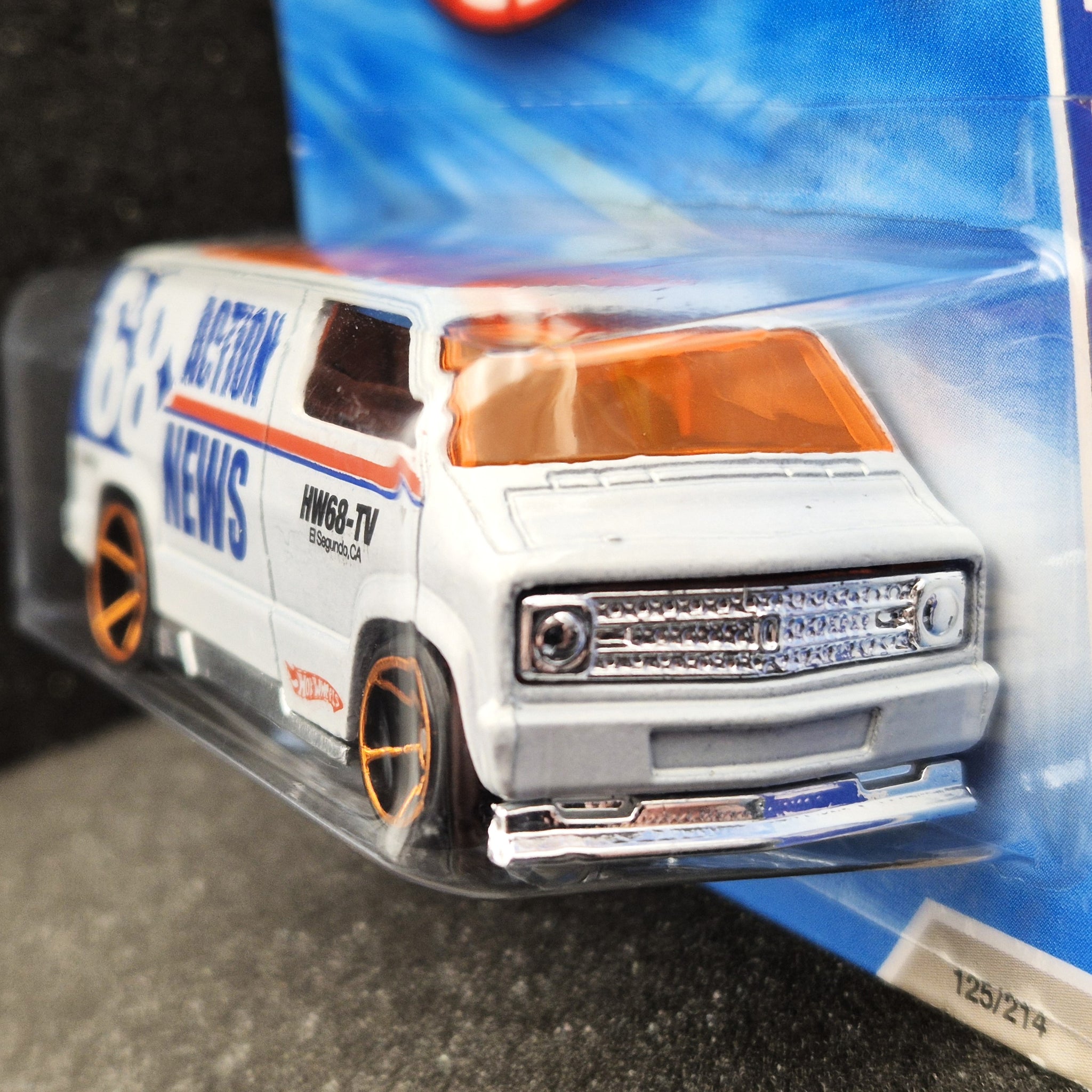 HOT WHEELS DIE CAST CAR - 2010 Custom '77 Dodge Van Pearl White #125 HW City Works 9/10 New