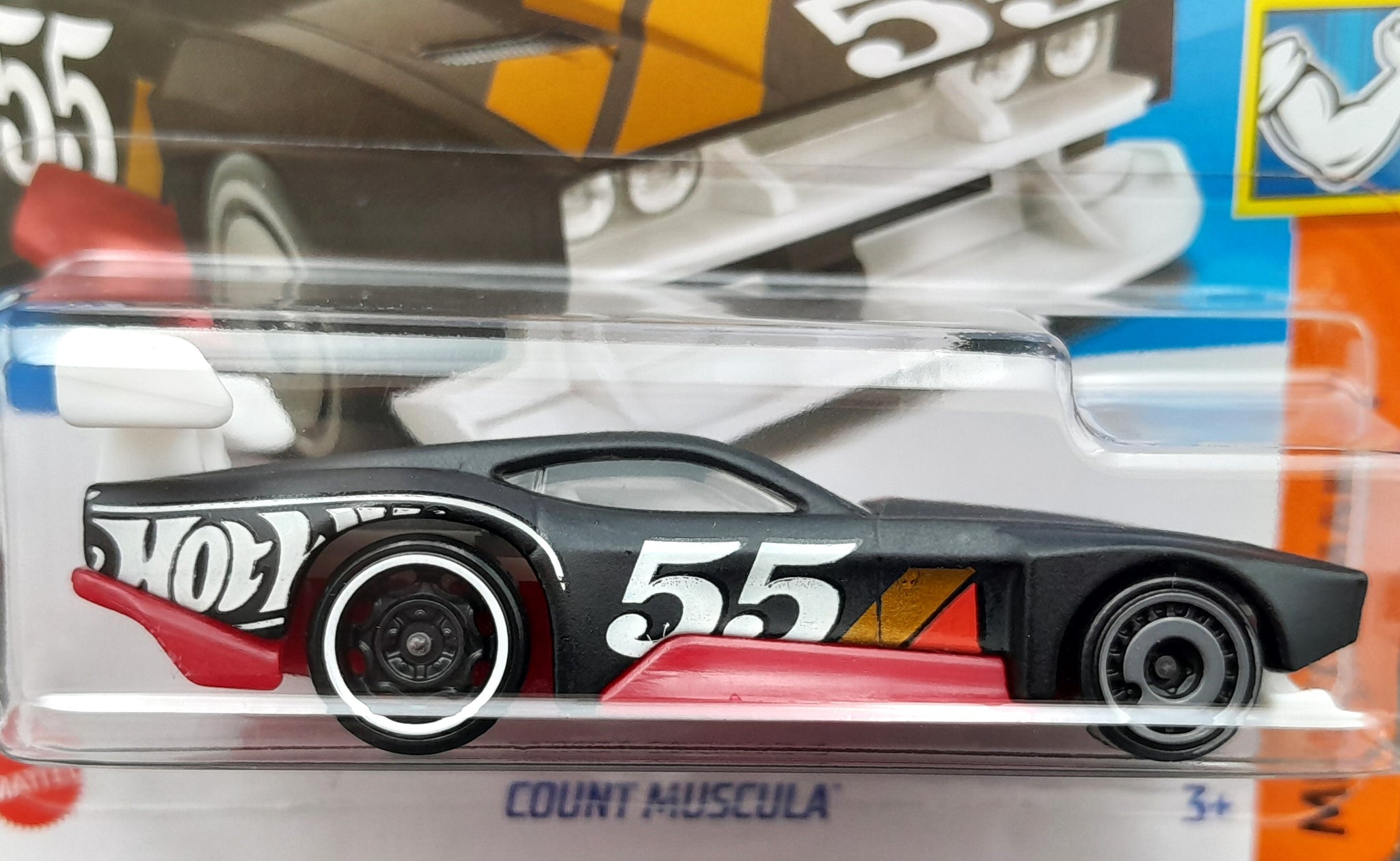 HOT WHEELS DIE CAST CAR - 2023 Count Muscula Matt Black #100 Muscle Mania 3/10 New
