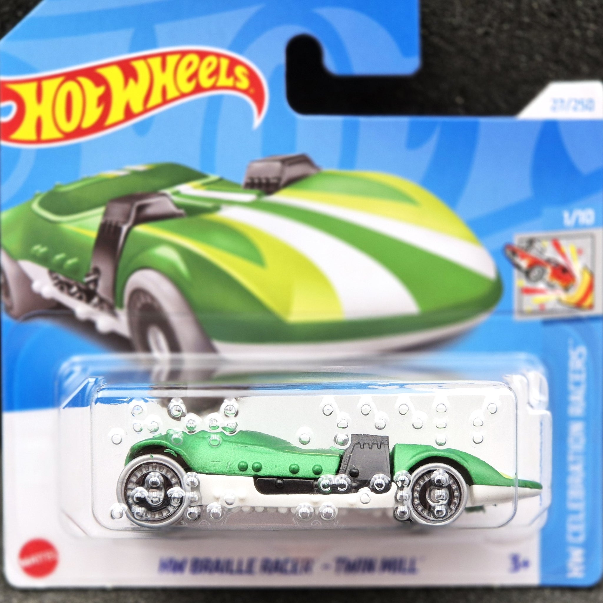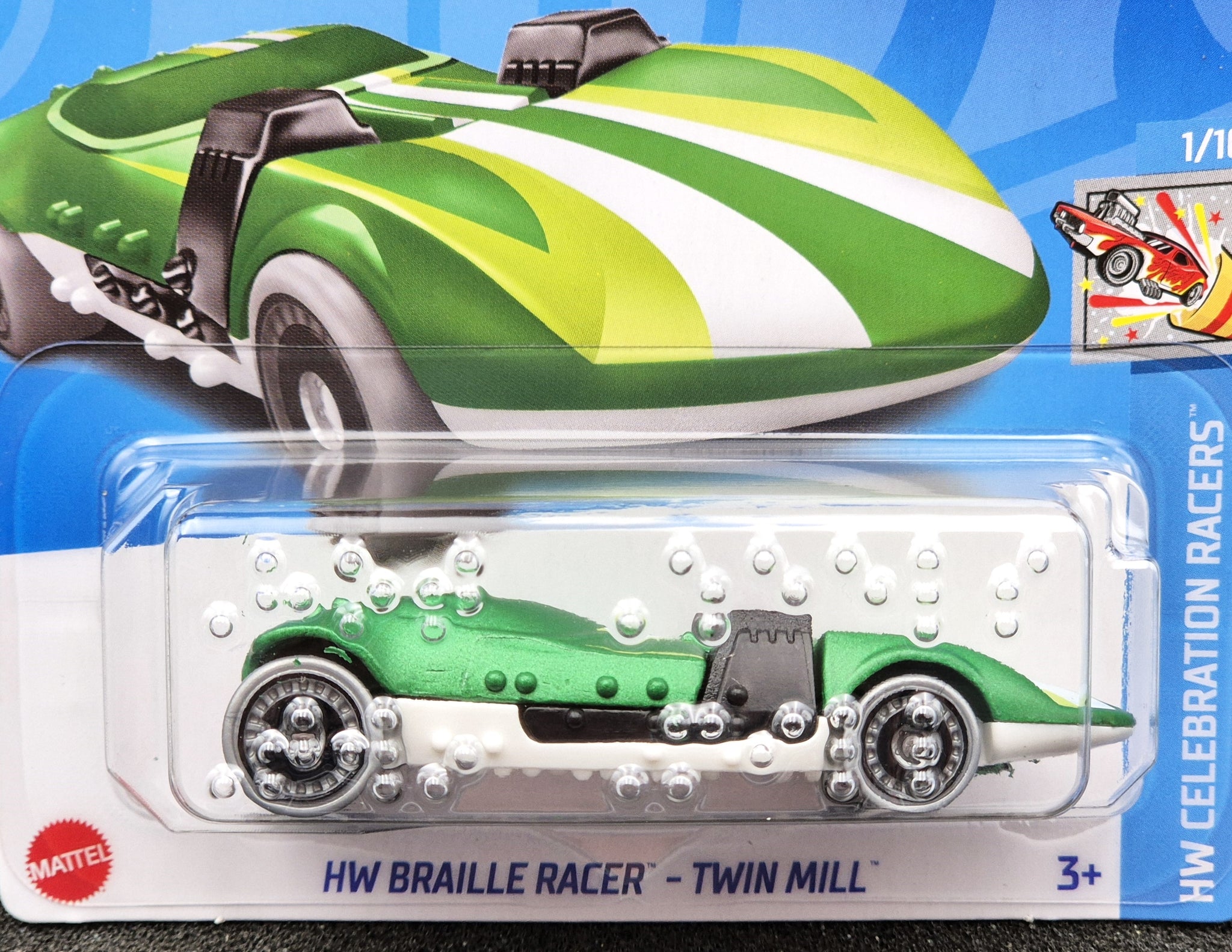 HOT WHEELS DIE CAST CAR - 2024 HW Braille Racer - Twin Mill Matte Green #27 HW Celebration Racers 1/10 New
