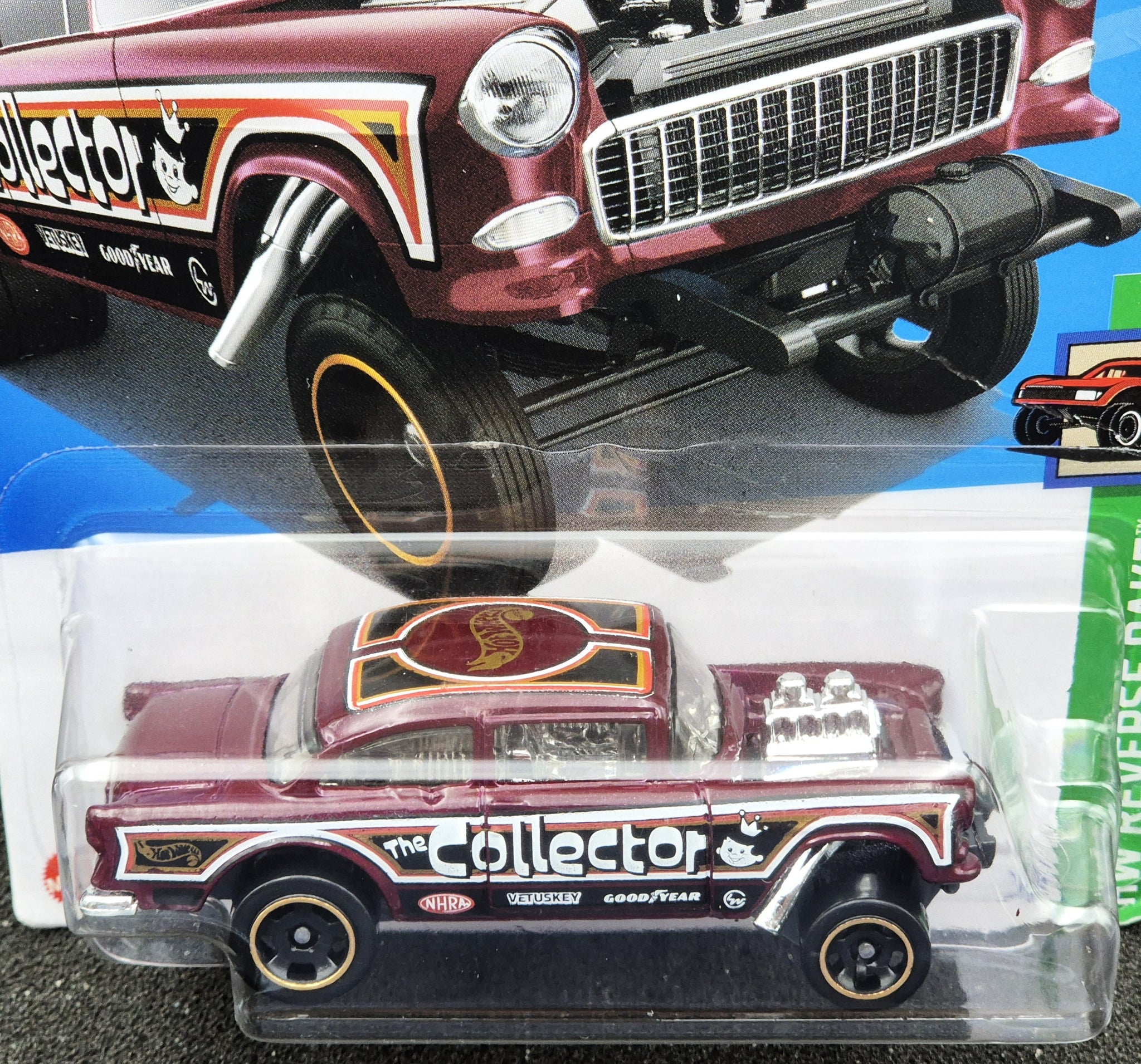 Hot Wheels 2024 '55 Chevy Bel Air Gasser Maroon #63 HW Reverse Rake 2/5 New Long Card