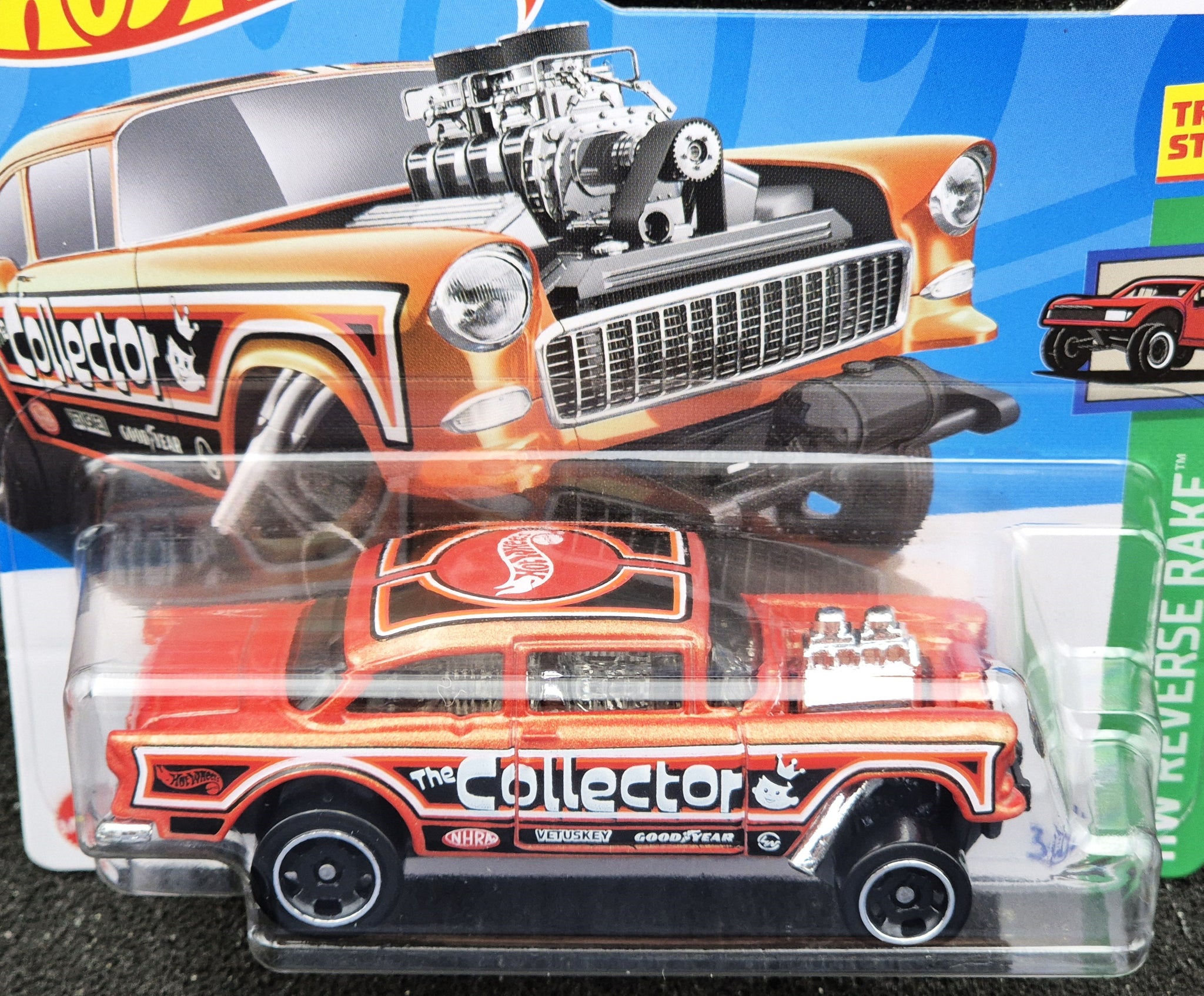 HOT WHEELS DIE CAST CAR - 2024 '55 Chevy Bel Air Gasser Orange #63 HW Reverse Rake 2/5 New