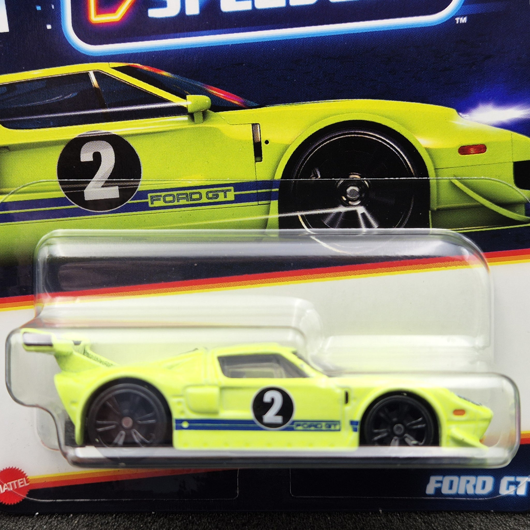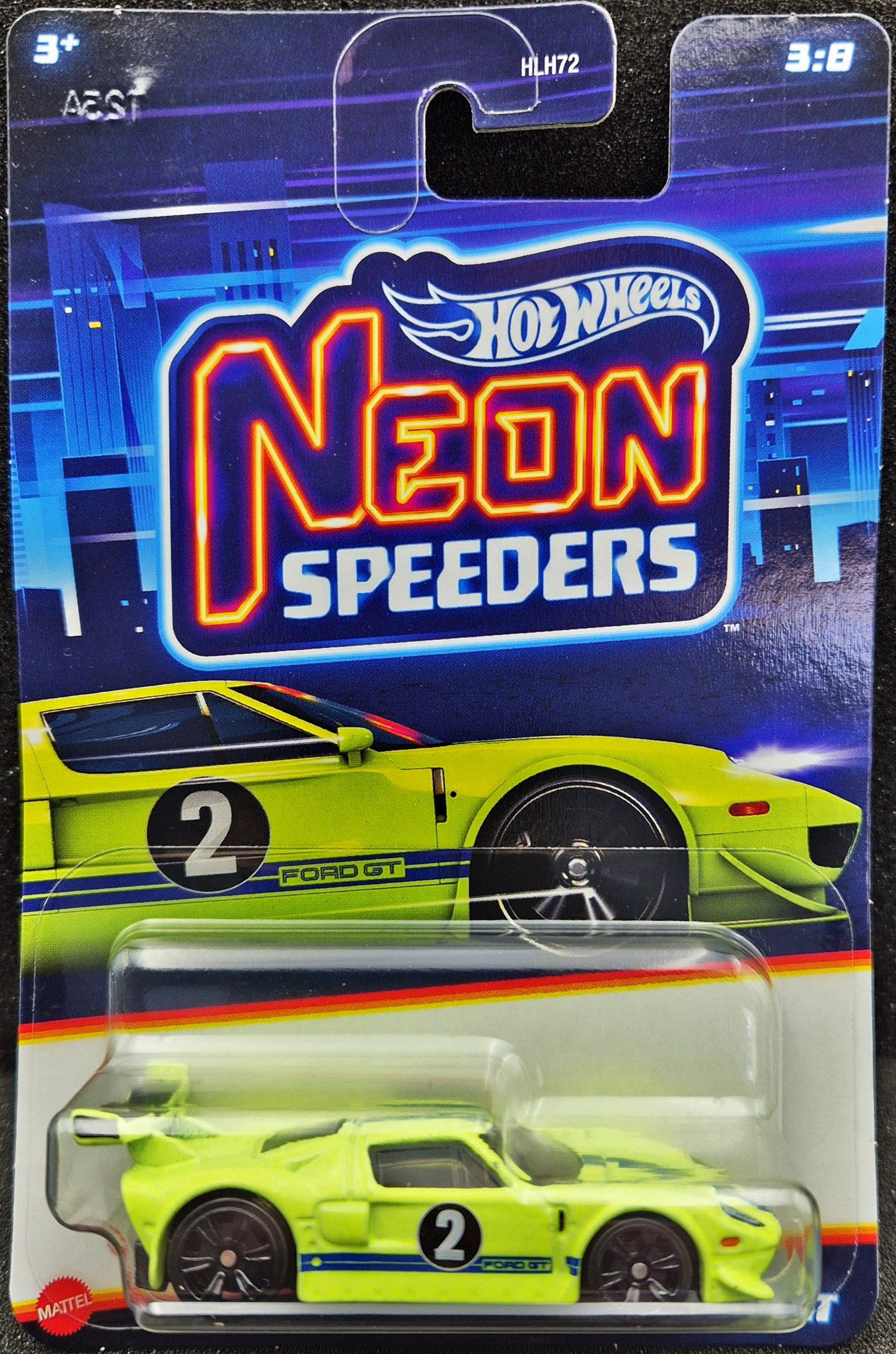 Hot Wheels 2024 Ford GT Neon Yellow Neon Speeders 3/8 New Long Card