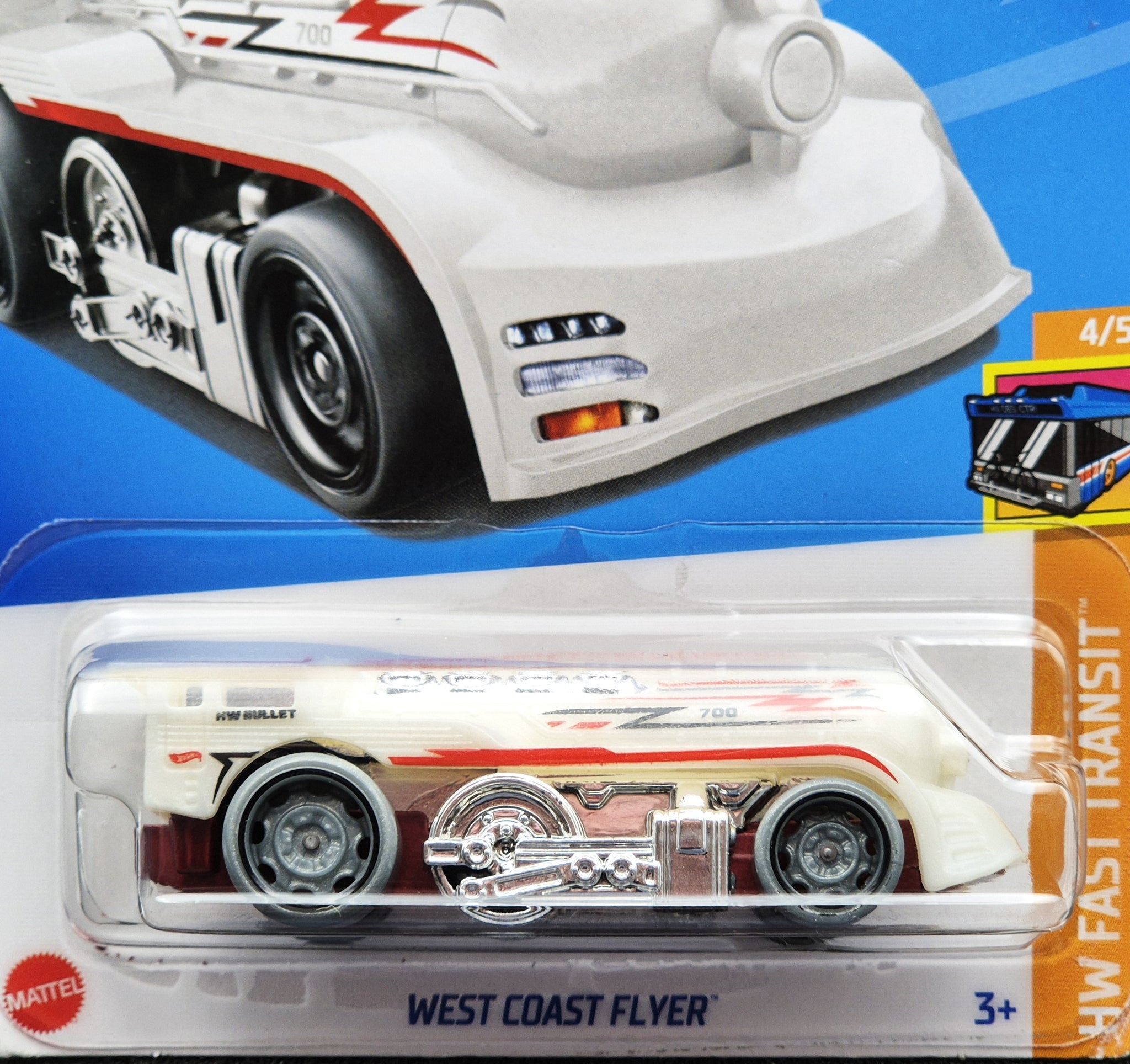 HOT WHEELS DIE CAST CAR - 2024 West Coast Flyer White #56 HW Fast Transit 4/5 New Long Card
