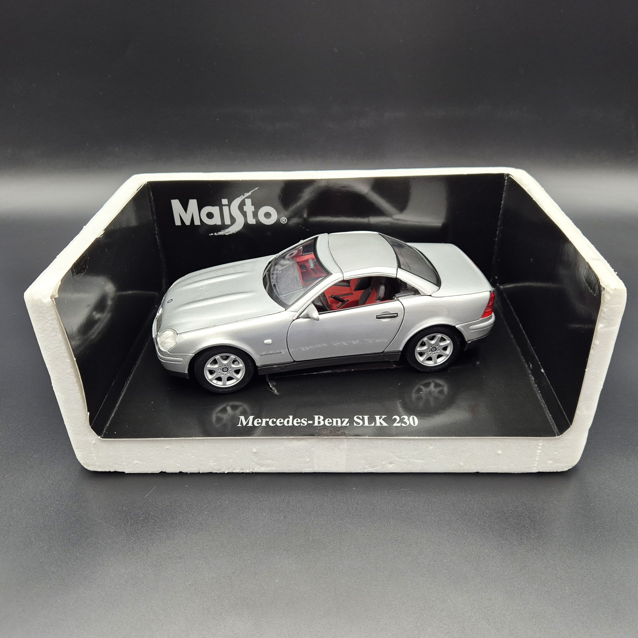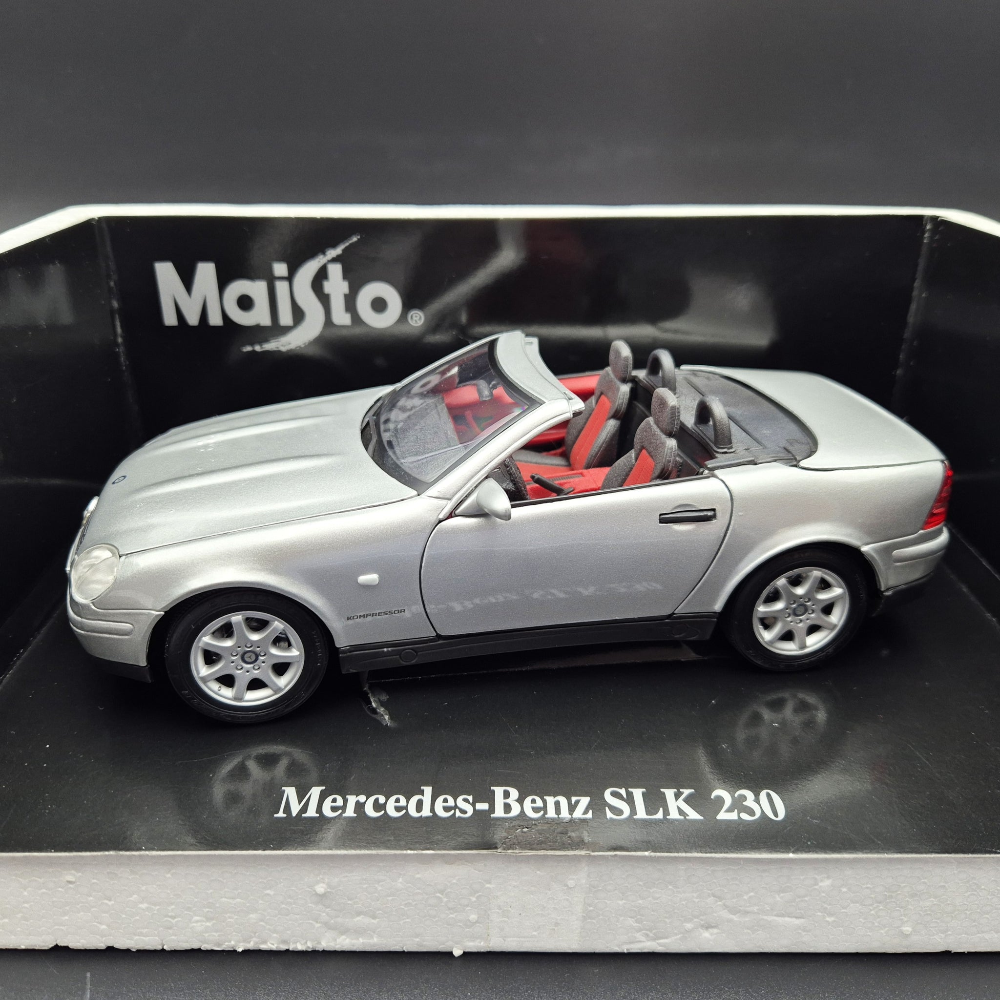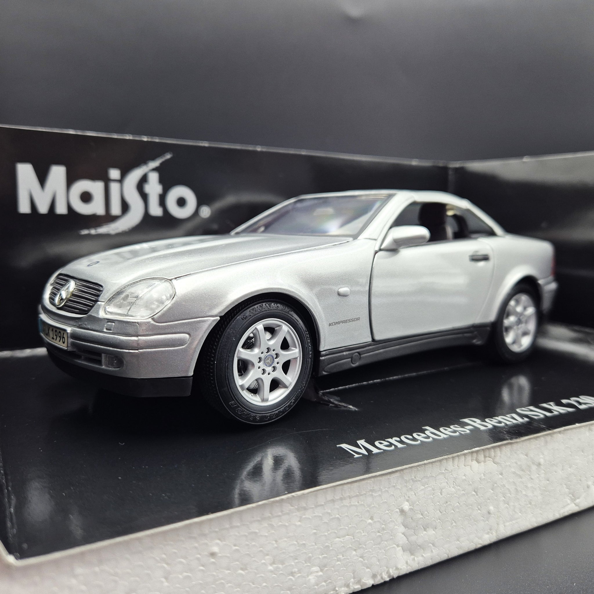MAISTO DIE CAST CAR - 1996 Mercedes-Benz SLK 230 Cabriolet Silver #31838 1:18 Die Cast Car
