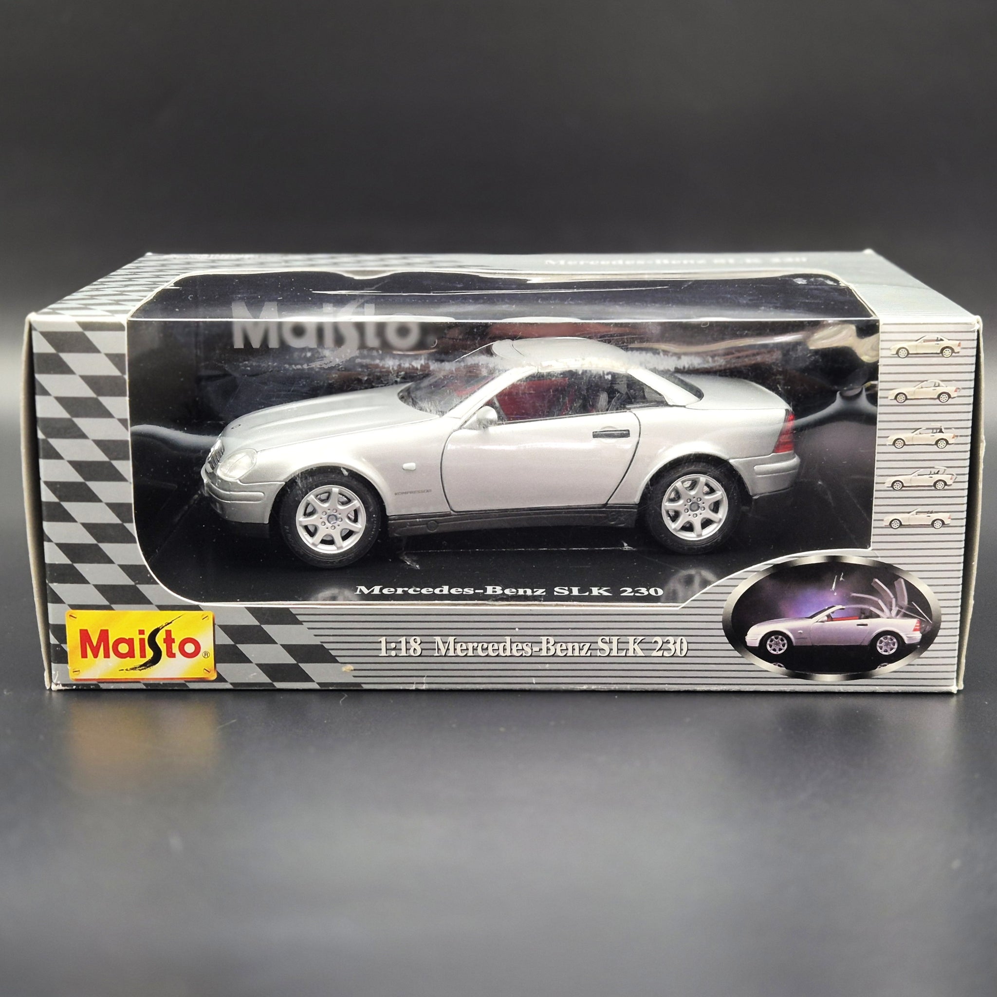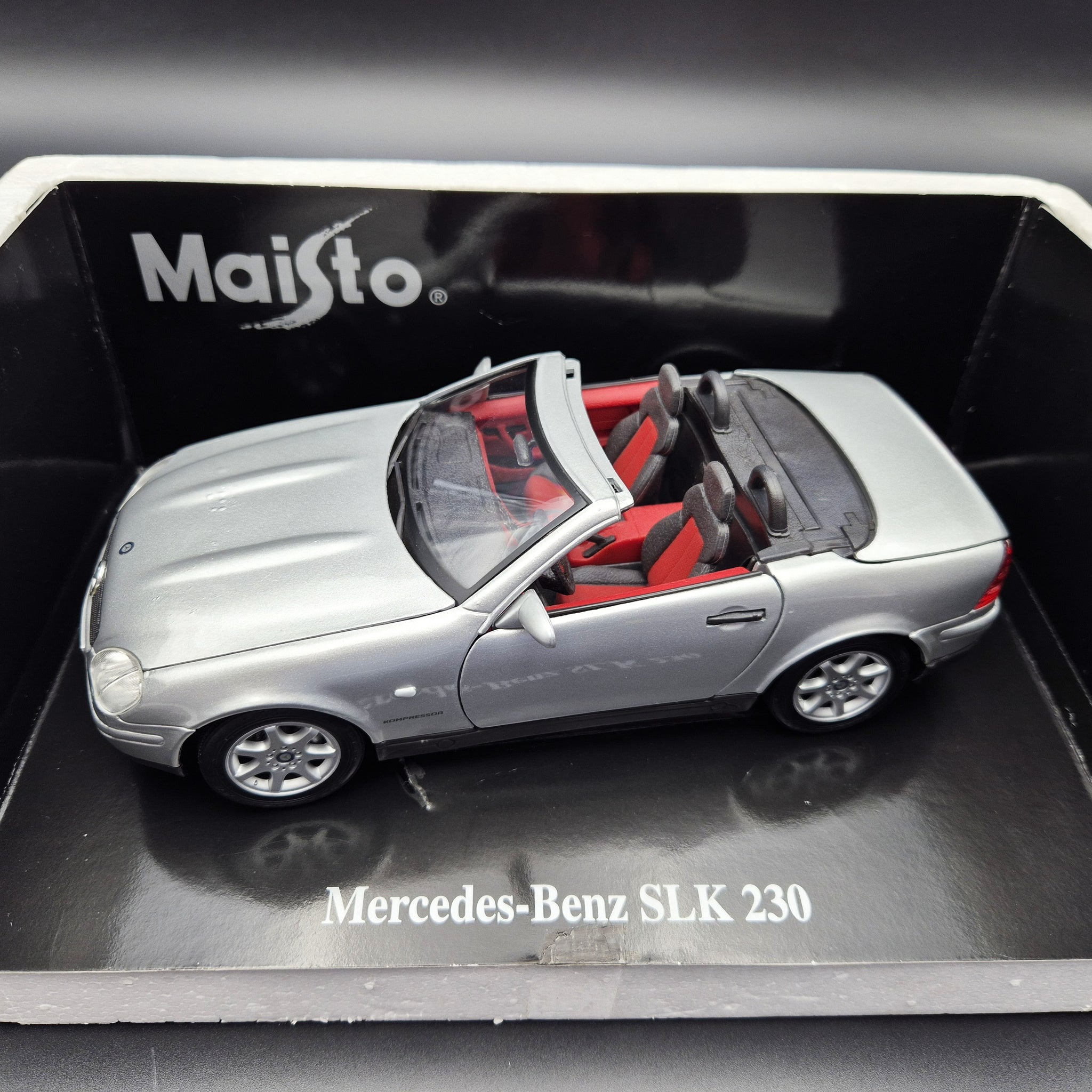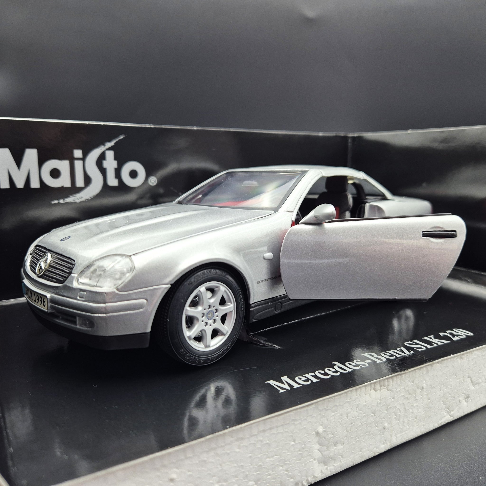 MAISTO DIE CAST CAR - 1996 Mercedes-Benz SLK 230 Cabriolet Silver #31838 1:18 Die Cast Car
