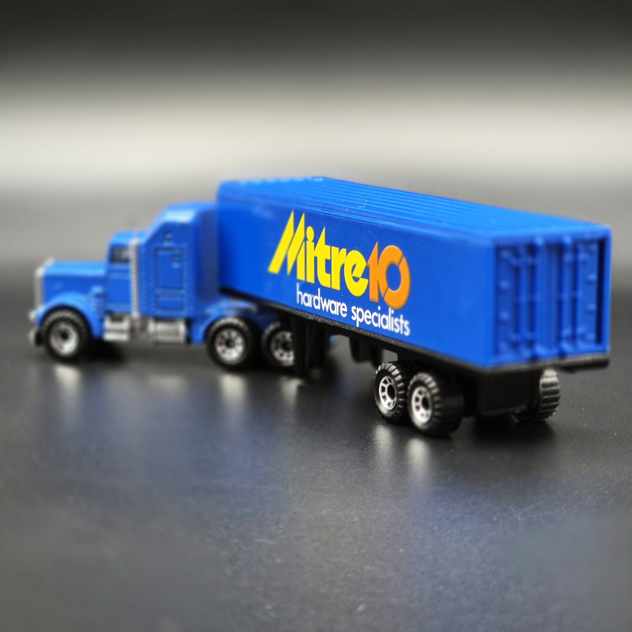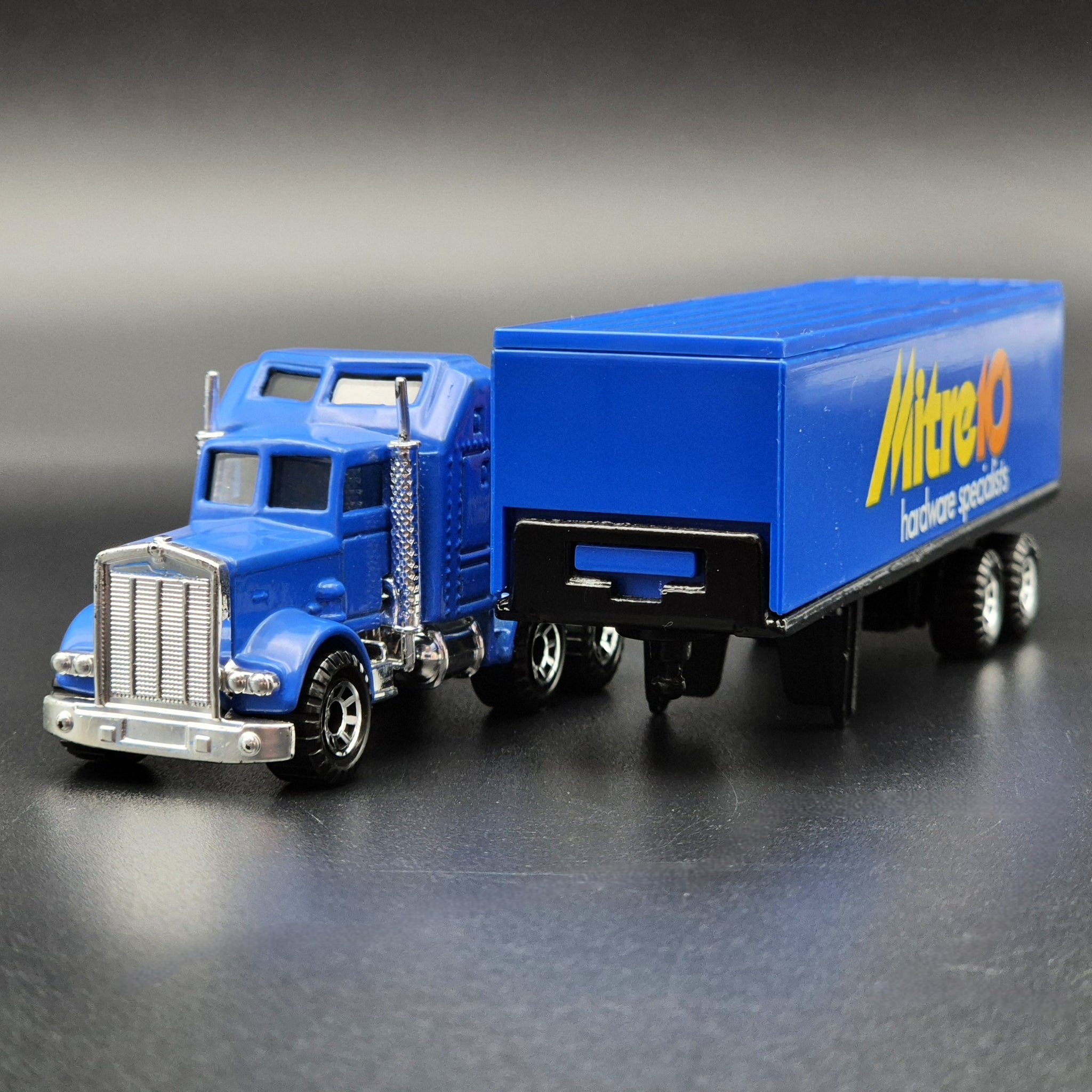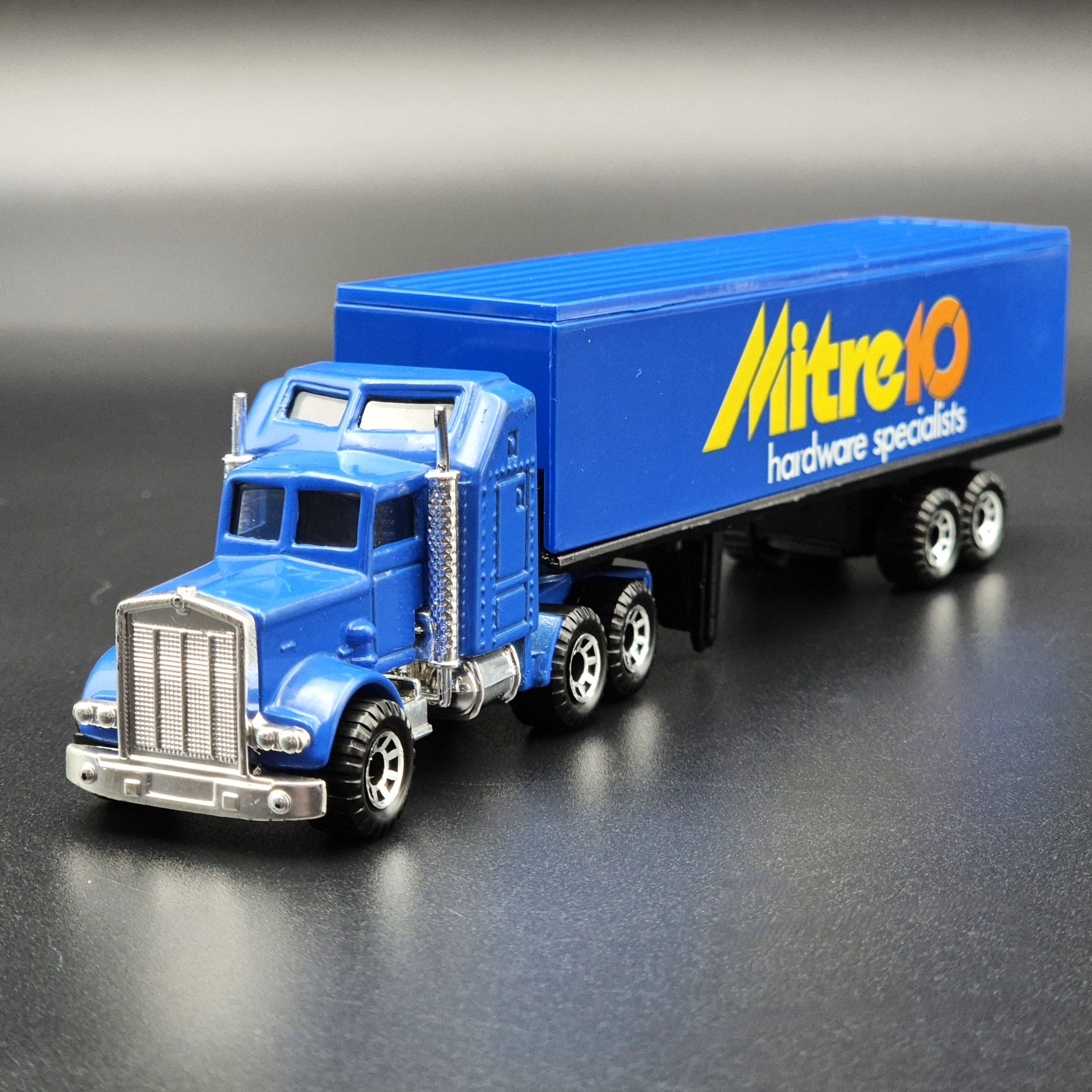 MATCHBOX DIE CAST TRUCK - 1987 Kenworth Aerodyne Semi & Box Trailer Blue Mitre 10 Convoy CY-9 - Boxed In Incorrect Box