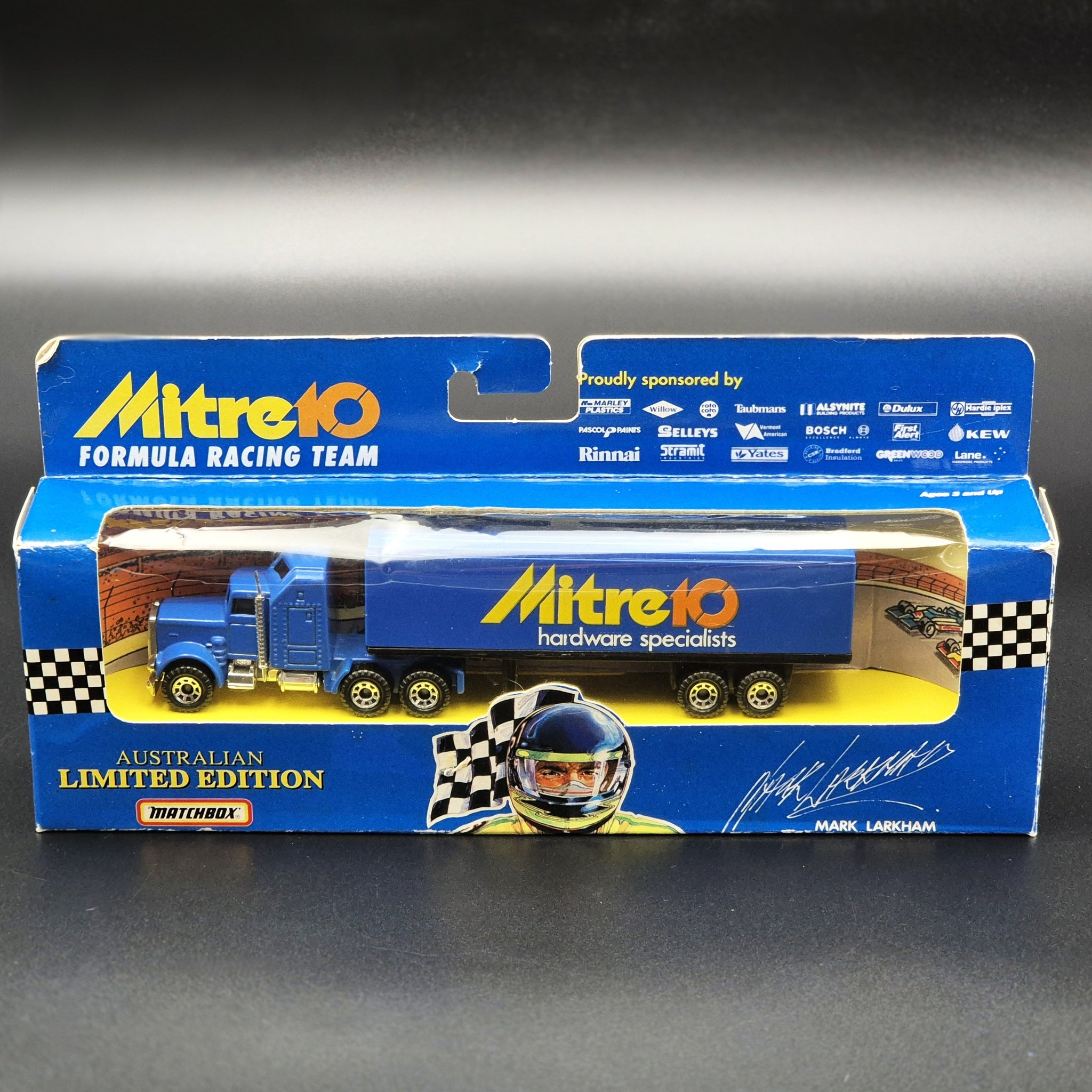 Matchbox 1987 Kenworth Aerodyne Semi & Box Trailer Blue Mitre 10 Convoy CY-9 - Boxed In Incorrect Box