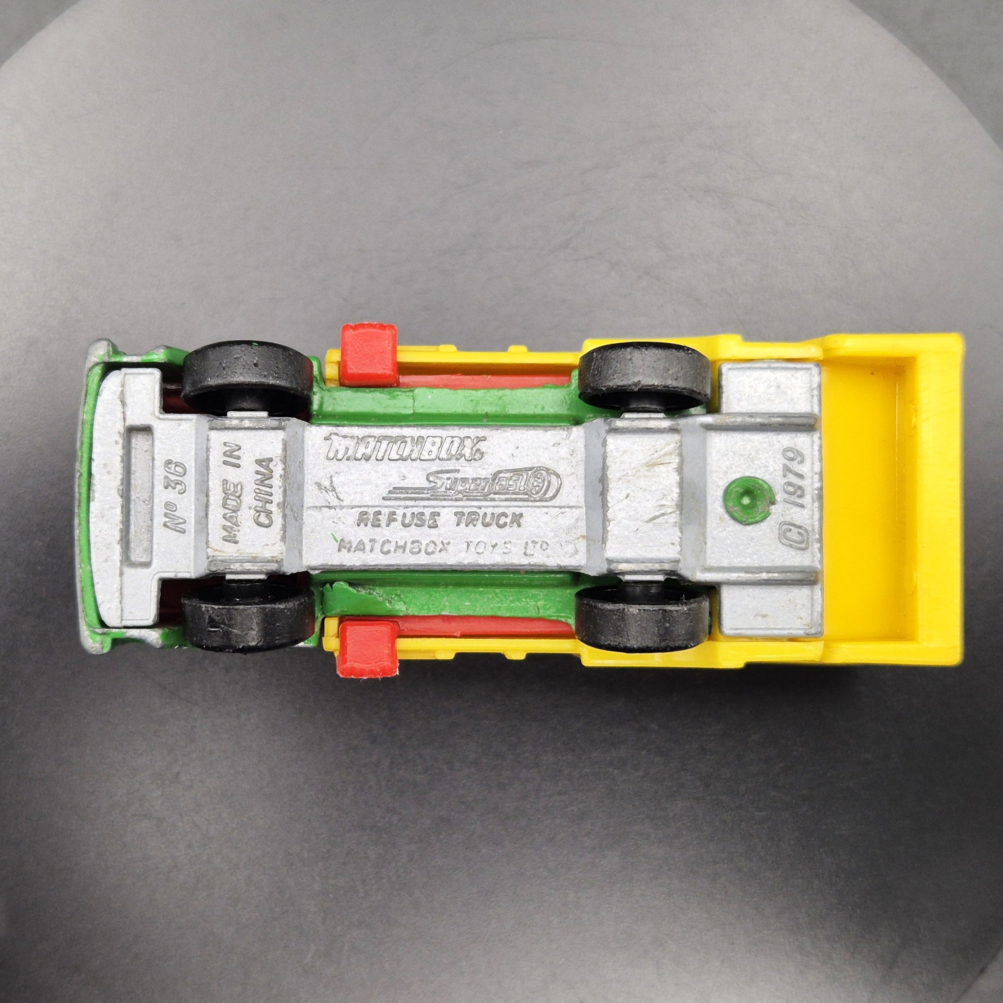 Matchbox 1987 Refuse Truck Green #36 Matchbox 1-75 Superfast - Front Axle Bent