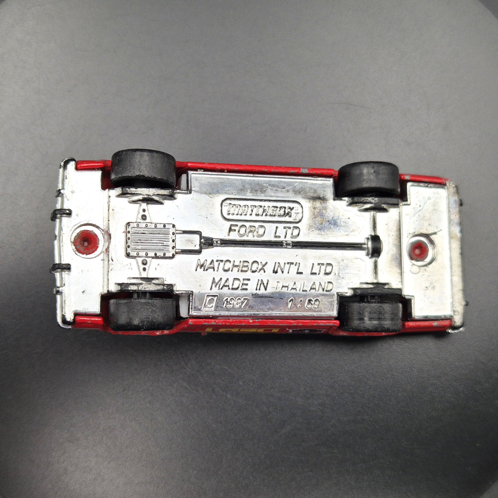 MATCHBOX DIE CAST CAR - 1990 Ford LTD Fire Chief Car Red Motor City Series