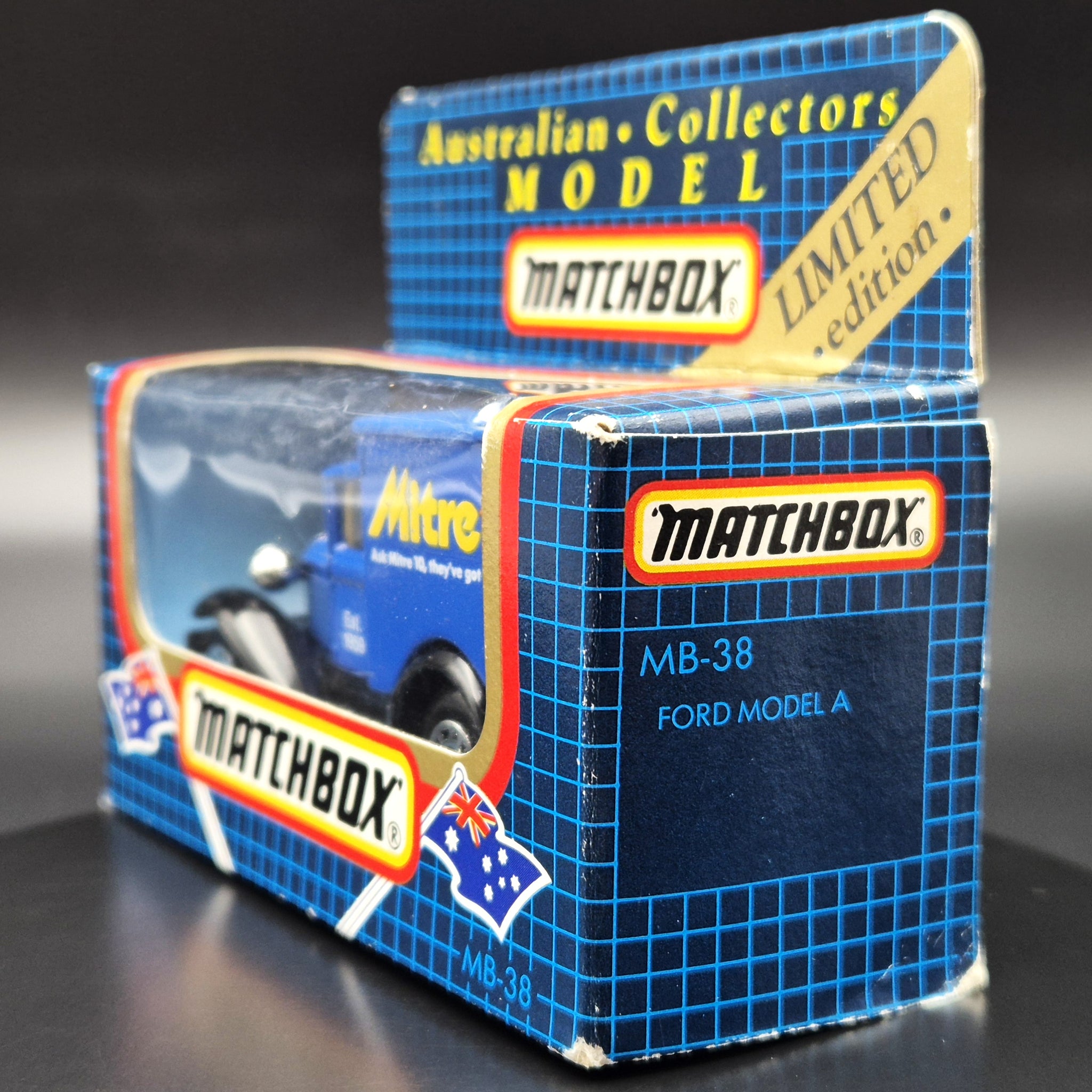 MATCHBOX DIE CAST CAR - 1990 Ford Model A Van Mitre 10 Blue Series 1-75 MB38 Boxed