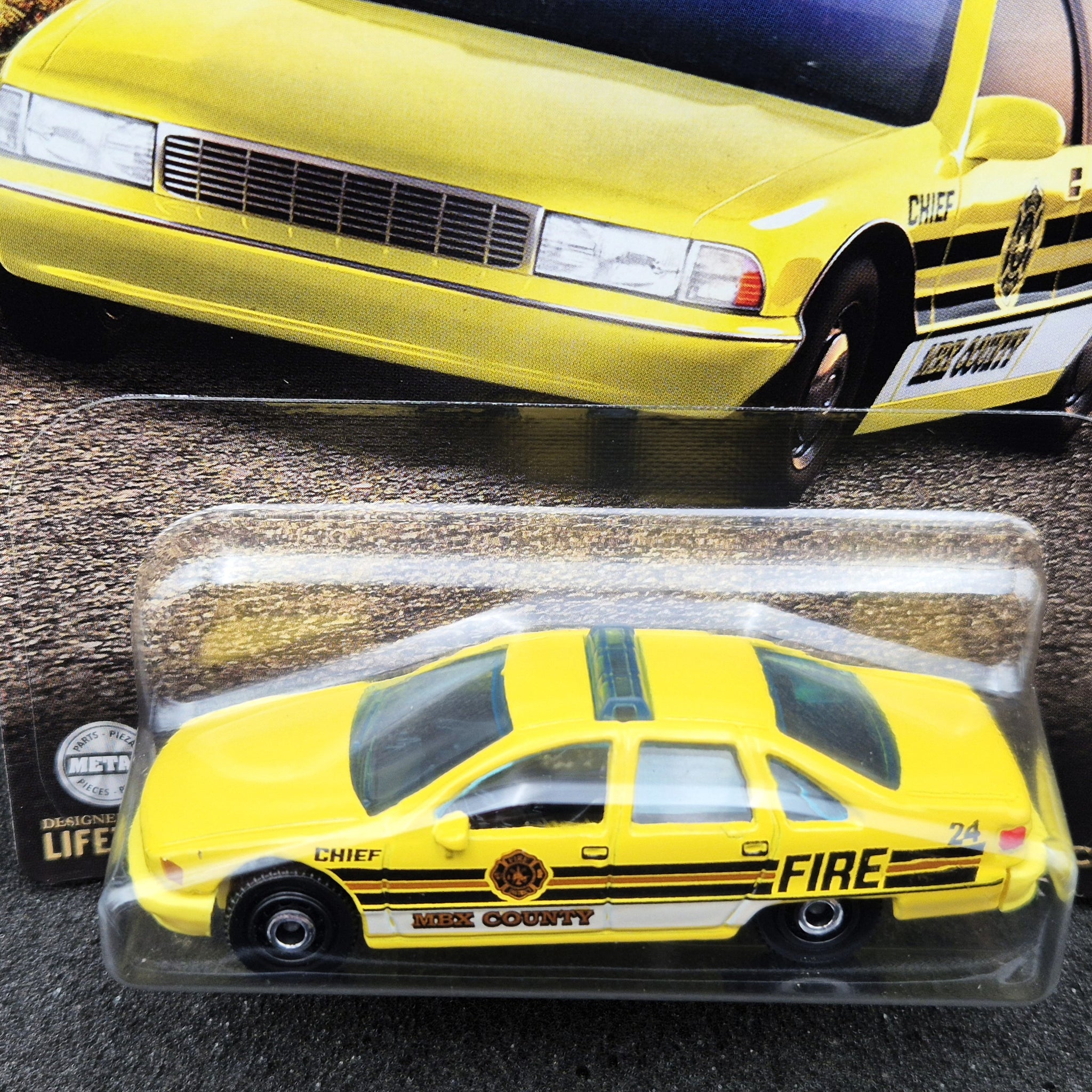 MATCHBOX DIE CAST VEHICLE - 2024 Chevy Caprice Classic Police Yellow County Rescue Series 3/6 New