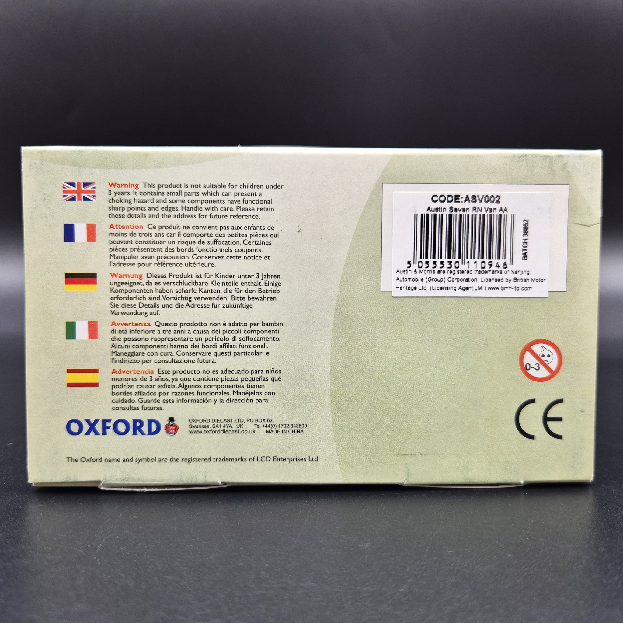 OXFORD DIECAST CAR - Austin Seven RN Van AA Yellow ASV002 1:43 Model
