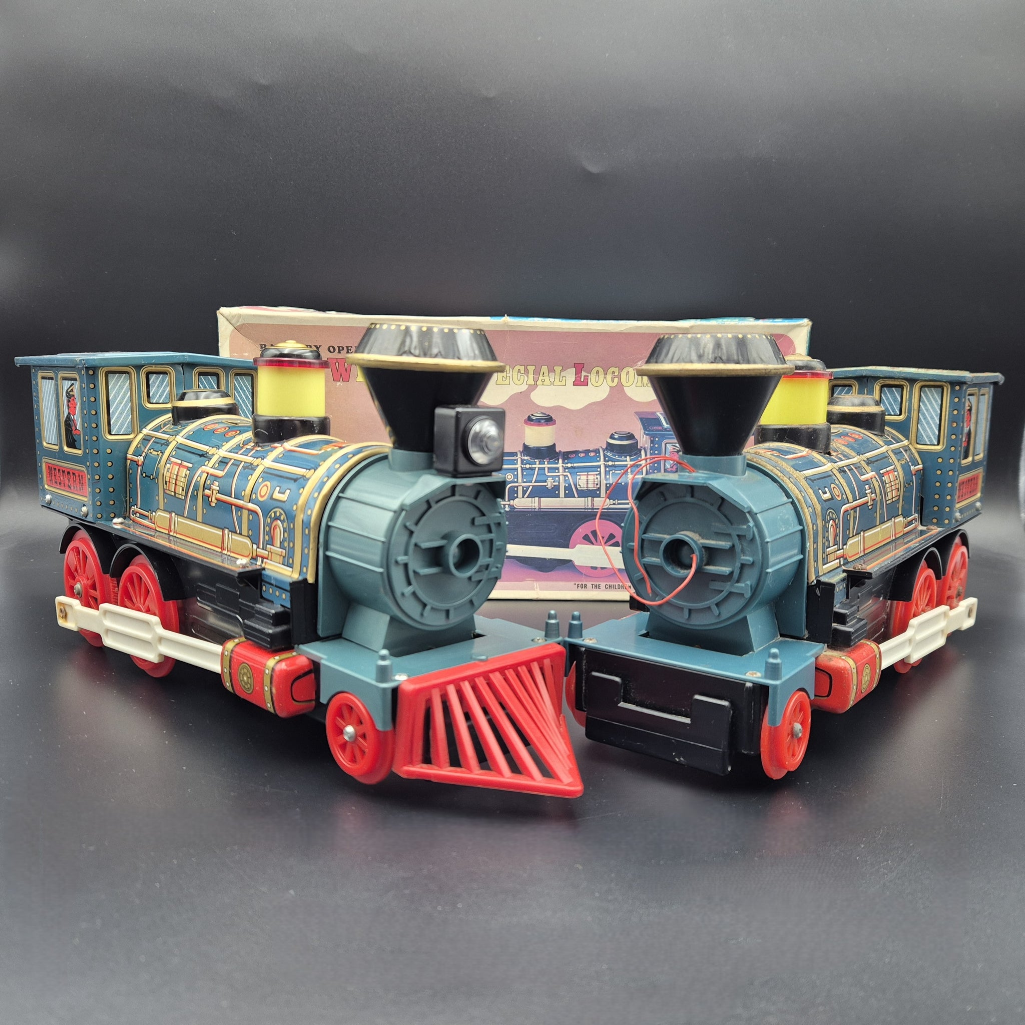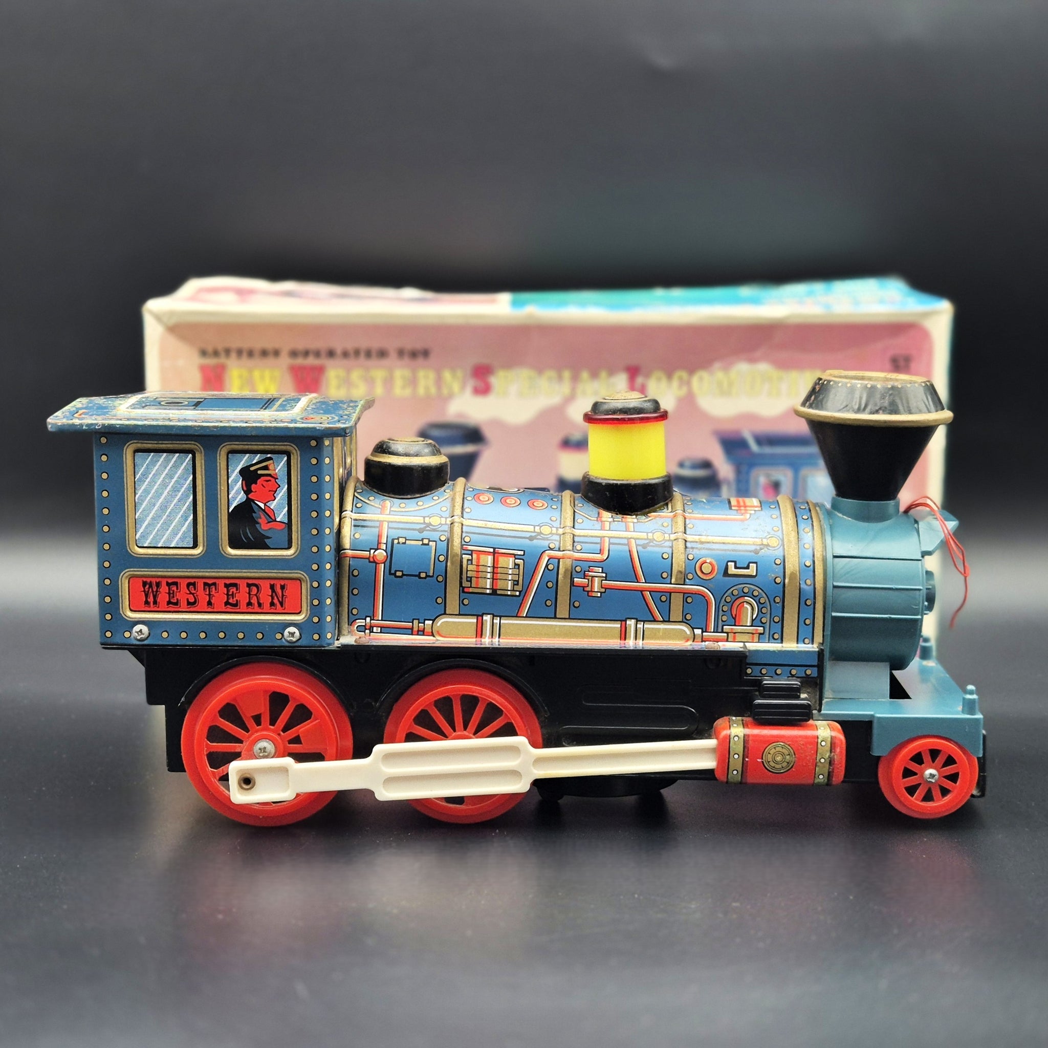 MASUDAYA PRESSED STEEL TRAINS - New Western Special Locomotive Vintage Battery Operated Toy Pressed Steel